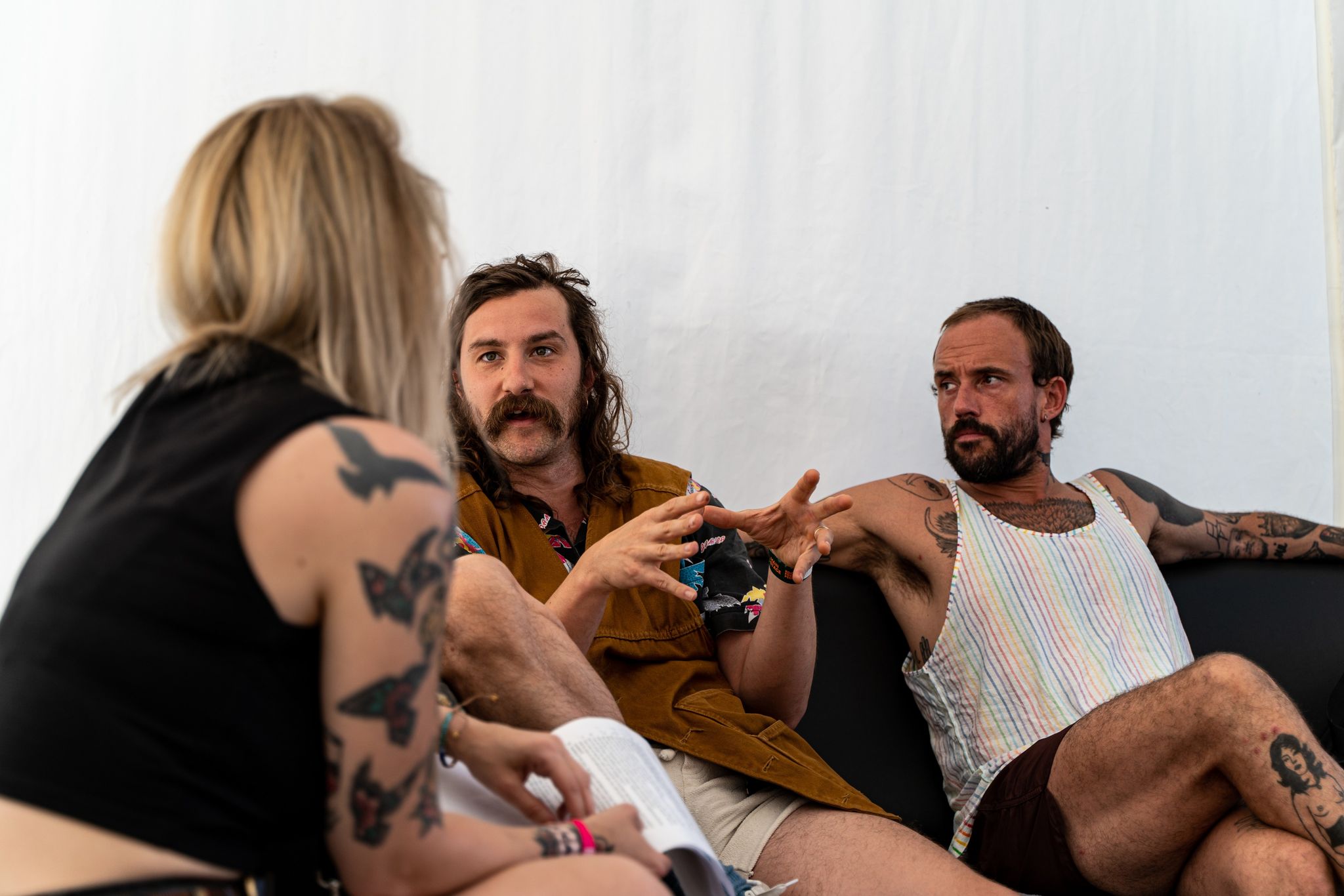Britské IDLES asi netřeba příliš představovat. Rocková kapela z Bristolu do Česka zavítala už podruhé, po pandemii byl návrat o to radostnější. Krom skvělé show nám věnovali kytarista Mark Bowen a zpěvák Joe Talbot pár minut ve vyhřáté backstage. Ačkoli