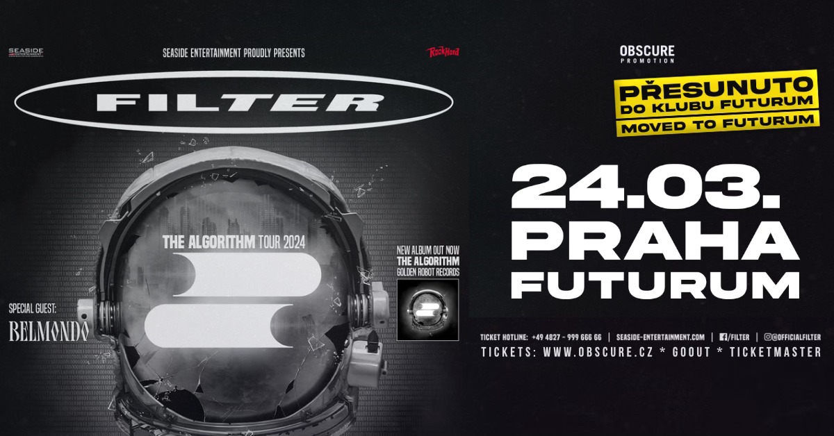 FILTER + SPECIAL HOST: BELMONDO 24 / 03 / 2024 / PRAHA / FUTURUM Na Filter se těší tak moc fanoušků, že nebylo jiné možnosti než koncert přesunout do Futurum Music Baru. Nebojte, původní vstupenky vám zůstávají v platnosti! Kariéra hlavní postavy FILTER, zpěváka