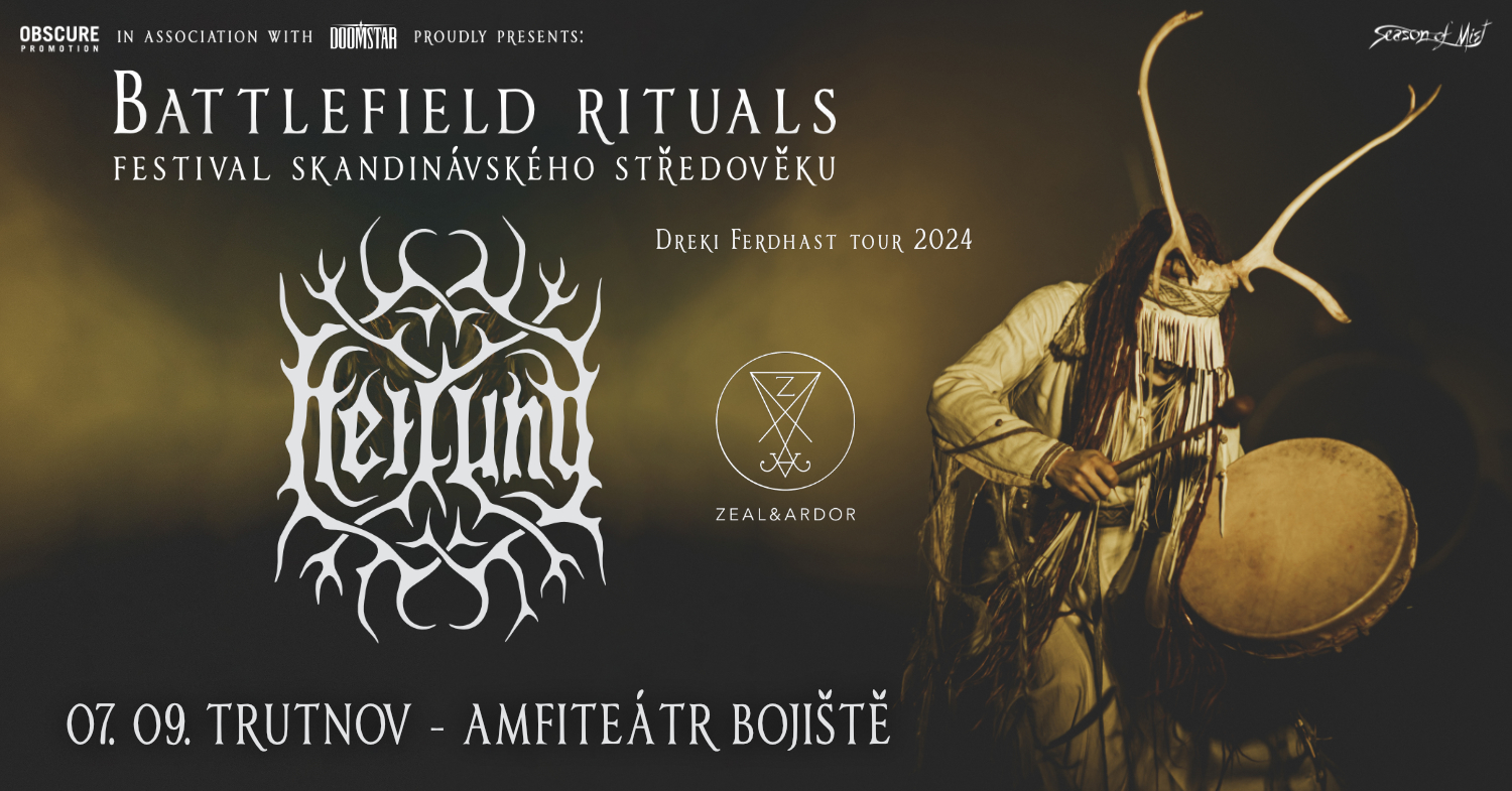 Hudba z úsvitu věků civilizace, úspěšné dánsko-německo-norské uskupení HEILUNG se vydává na tour „Dreki Ferdhast“ a jeho hlavní zastávkou bude trutnovské Bojiště, kde pod širým zářijovým nebem proběhne jednodenní festival BATTLEFIELD RITUALS. Umocnění historie a schopnost propojit moderní společnost se základy