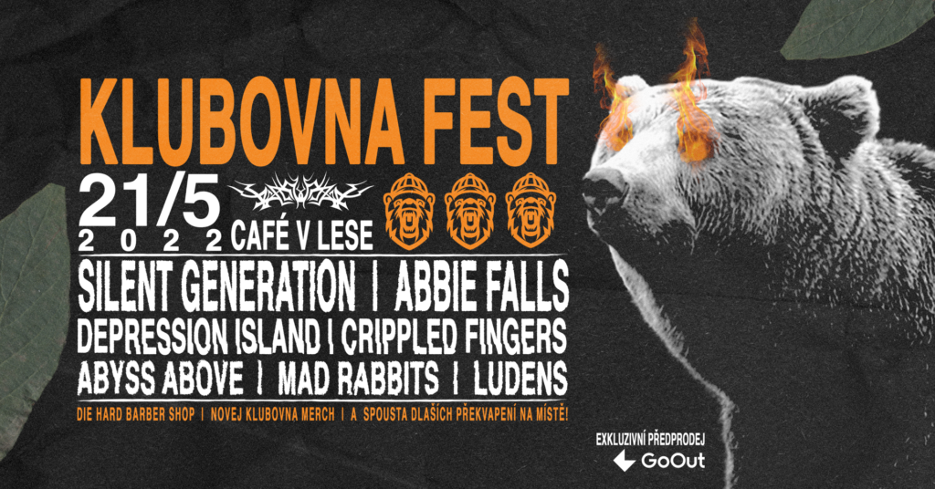 S láskou, dojetím a hrdostí Vás zveme na první Klubovna Fest, který proběhne již 21.5.2022 v Cafe v Lese, kde se krom sedmičky skvělých interpretů dočkáte také luxusní péče od DieHard Barber shopu a nového Klubovního merche!