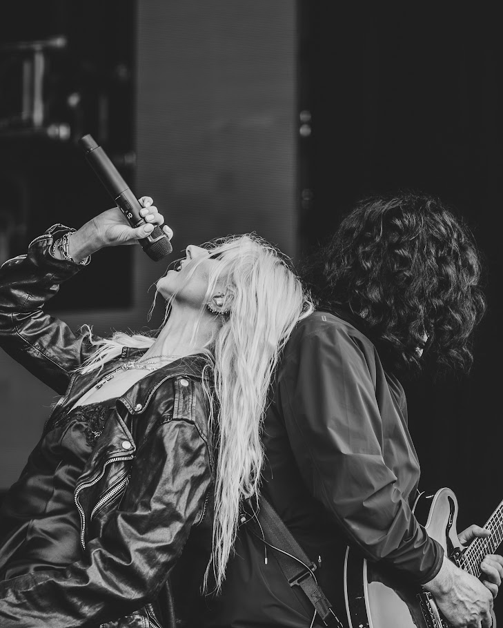 Večer nejprve rozproudili američtí The Pretty Reckless v čele s frontwoman Taylor Momsen. Na úvod znějící verš „On my tombstone when I go just put ‘Death by rock and roll’“ jasně předjímá, o co v jejich živém vystoupení jde především – o projevení lásky k rocku. Ostatně samotná Momsen během koncertu neváhala zmínit své nadšení nad tím, komu předskakují, když sdělila, že je stejná jako všichni přítomní – prostě jen fanynka AC/DC. Ačkoliv jsou The Pretty Reckless na hudební scéně už nějaký ten pátek (debutové album vydali v roce 2010), svou českou premiéru si odbyli teprve na podzim roku 2022. Pokud jste zažili jejich tehdejší pražský koncert, který byl poměrně nešťastně spojen s vystoupením folkmetalové kapely The HU, pak vás nic nepřekvapilo. Zhruba padesátiminutový set nadále sestává především z průřezu hitů dosavadních čtyř alb kapely (včetně „Going to Hell“, „Heaven Knows“ či prvního singlu „Make Me Wanna Die“) a od posledního českého vystoupení se liší pouze zkrácením a přidáním skladby „Follow Me Down“.