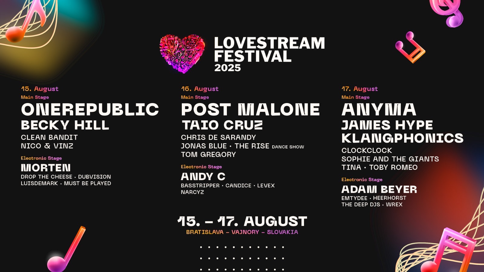 Slovenský festival sice nemá tak dlouhou historii, ale i za tak krátkou existenci dokázal do hlavního města dovézt zvučná jména! Red Hot Chili Peppers, Dua Lipa, Imagine Dragons, Macklemore nebo The Killers… Na jaká jména se ale můžeme těšit letos? Opět