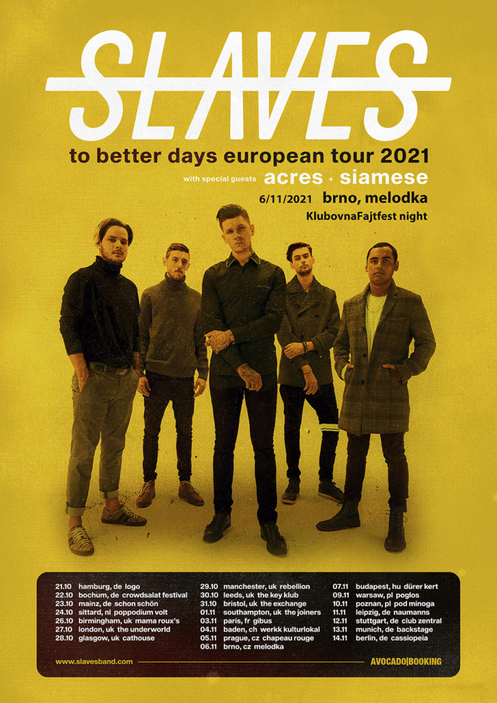 Nadále pokračuje i náš společný milovaný medvědí kolotoč KlubovnaFajtfest Night. Letos se vracíme do Brna, kde si to s námi snad střihne i zahraniční trio Slaves, Acres a Siamese. Slaves jsou z USA, myslíš, že podzim je v tomhle ohledu reálný? A proč padla volba zrovna na Brno?