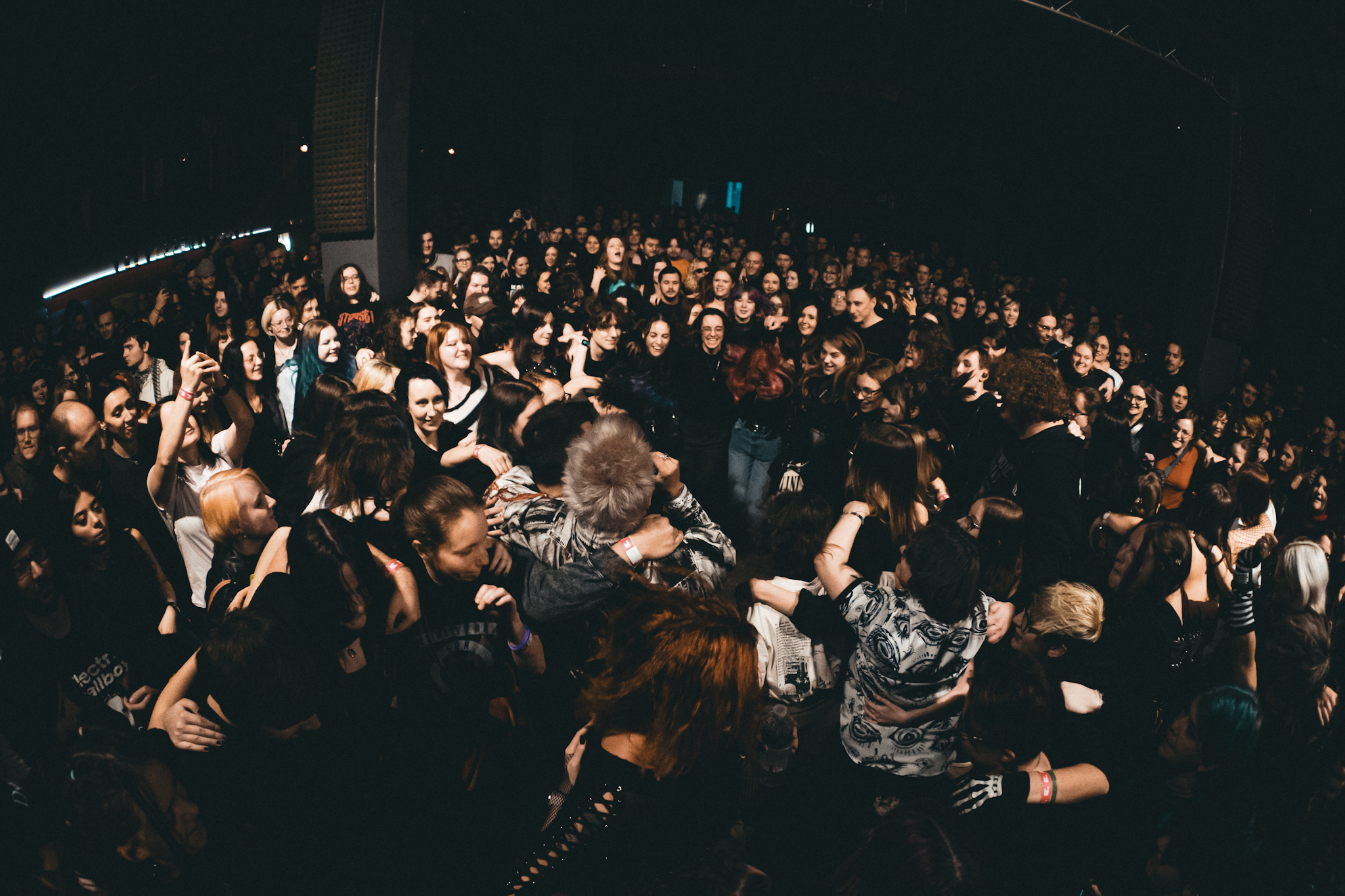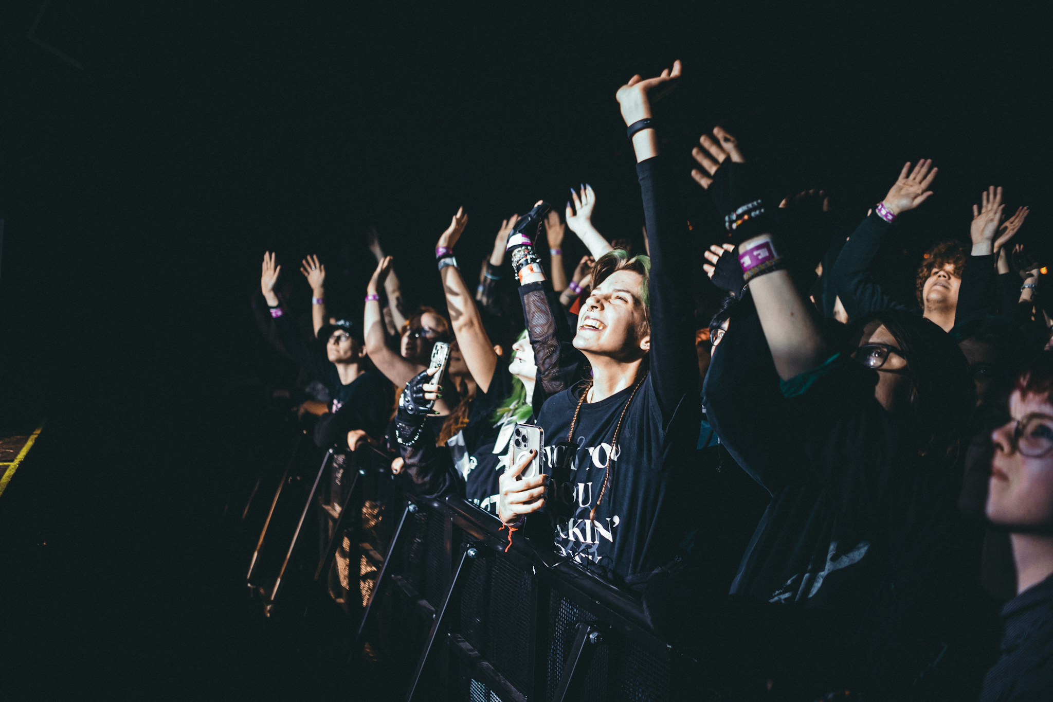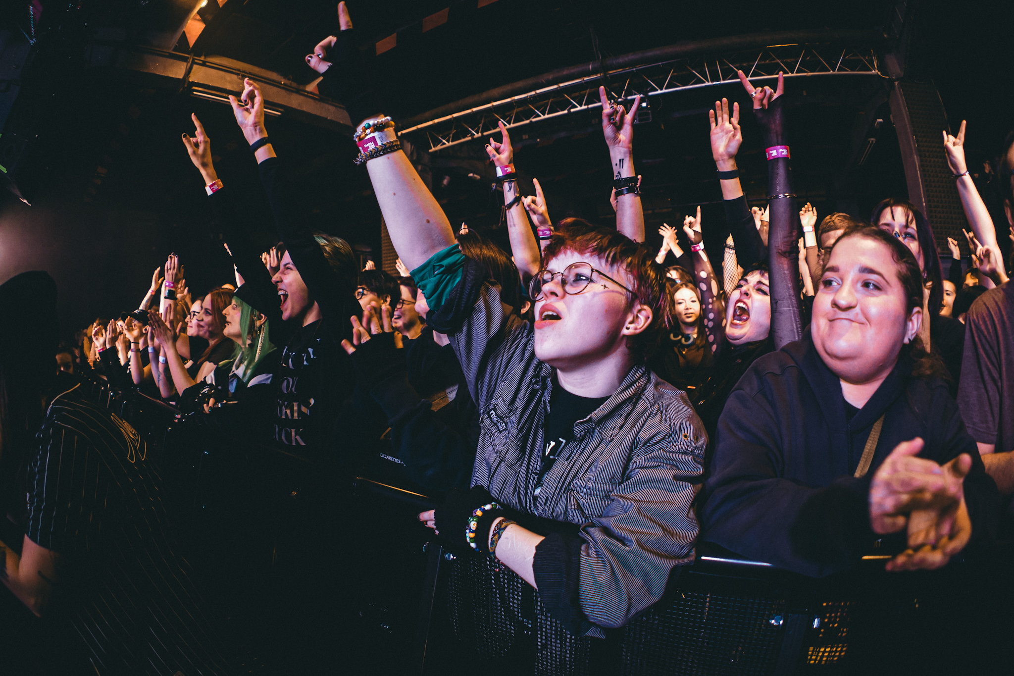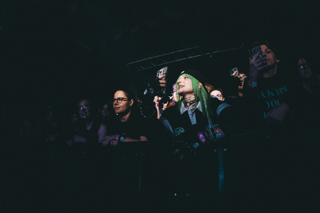 Žánrově se přesouváme k potemnělejšímu britskému elektrorocku, míra nasazení a profesionality ovšem zůstává stejná. A tak je otázka zpěváka Harryho Radforda: „You guys still alive?“ po desítkách minut headbangů na urvání hlavy dost relevantní. Výzev k tleskání minimálně přední sekce publika nebylo třeba. Z pódia totiž od prvních tónů srší organická radost z hudby, která vás donutí zapomenout na všechny starosti okolního světa (k čemuž jsme ostatně v průběhu setu přímo pobídnuti) a ústí tak v krásné momenty, jako byla komunitní skákačka v objetí za ramena a Harrym uprostřed davu při „Blackout“.