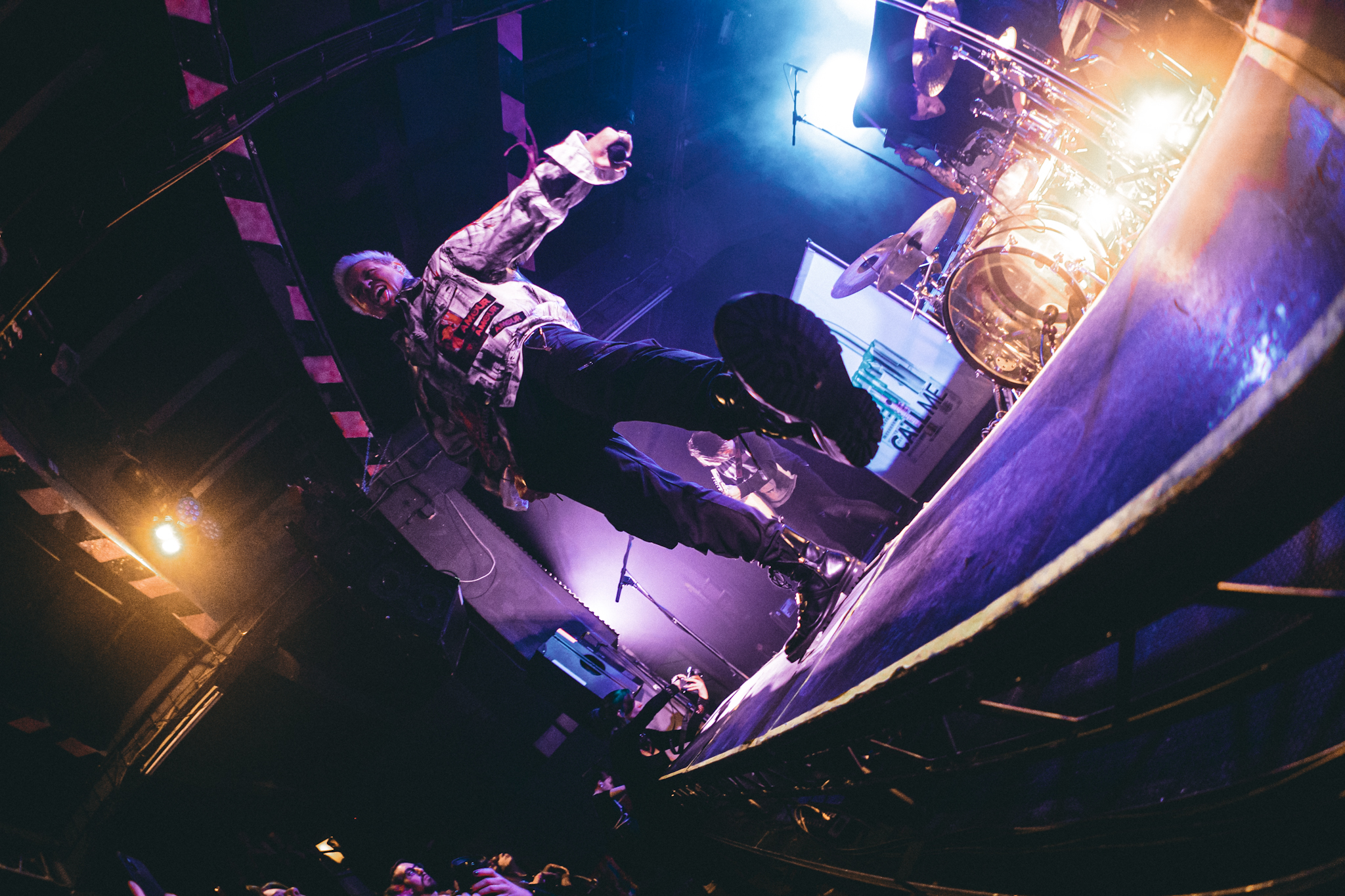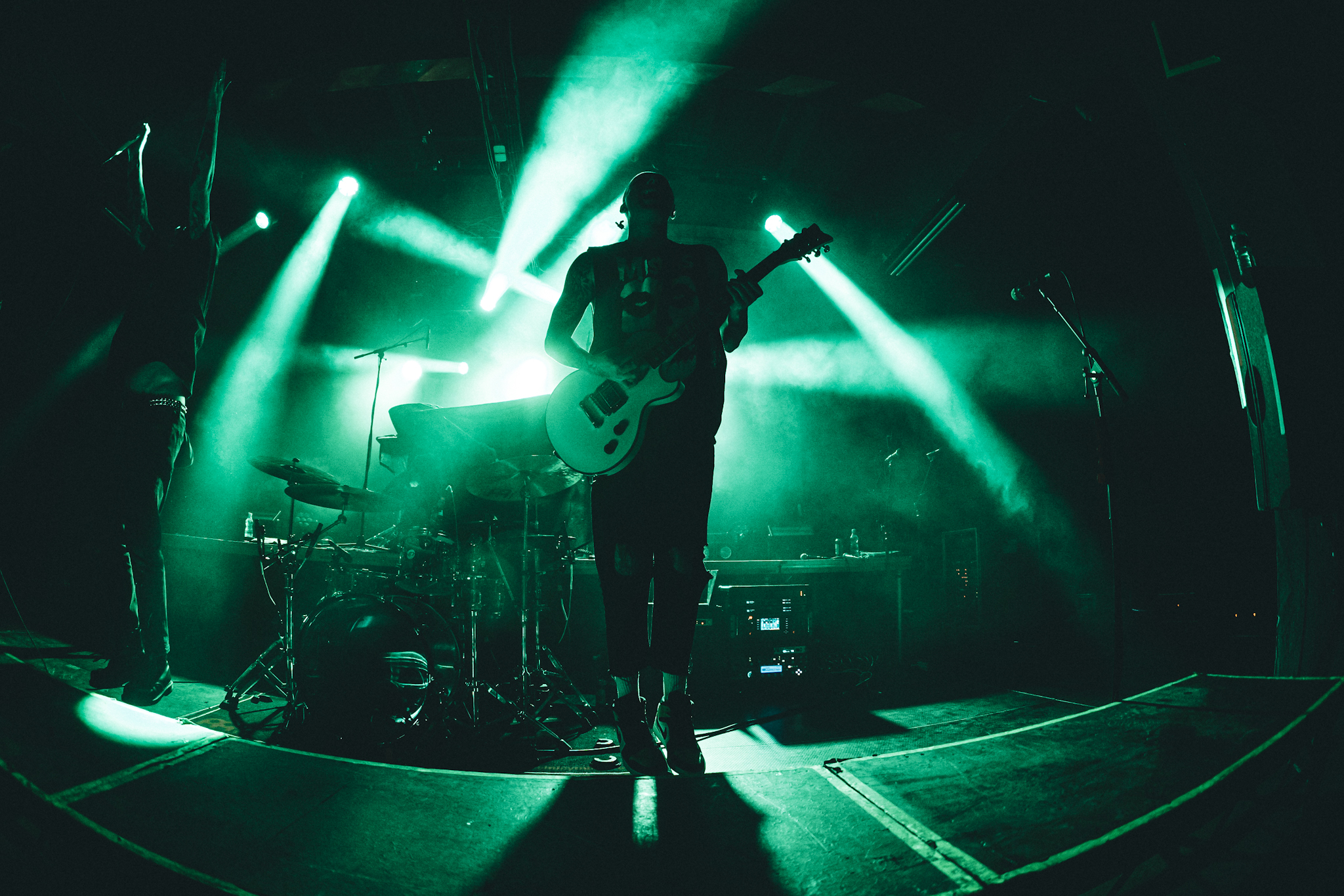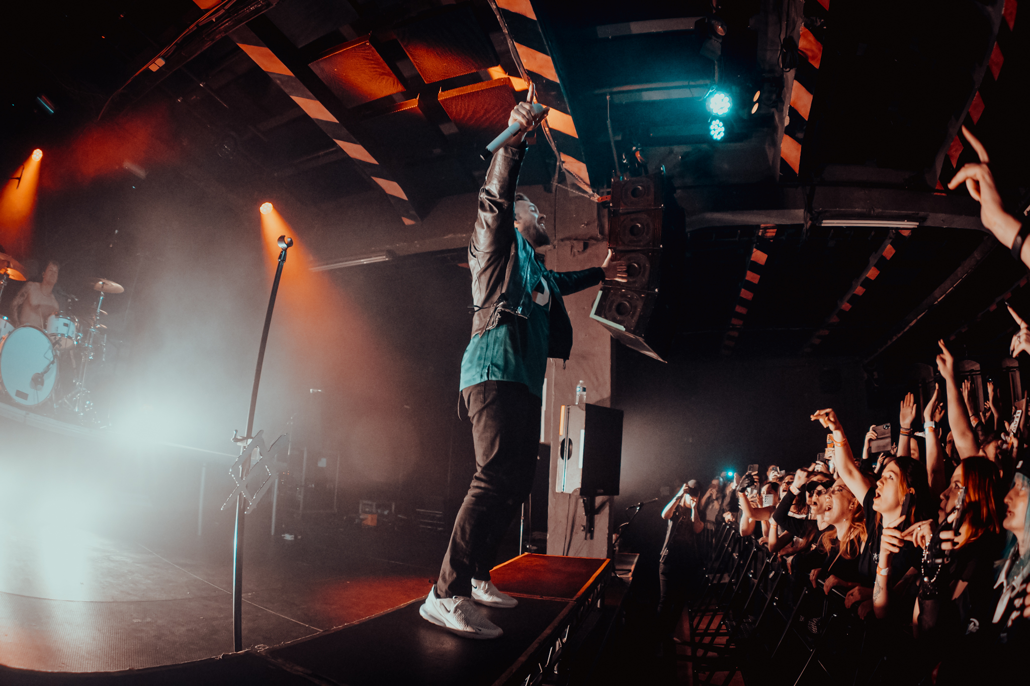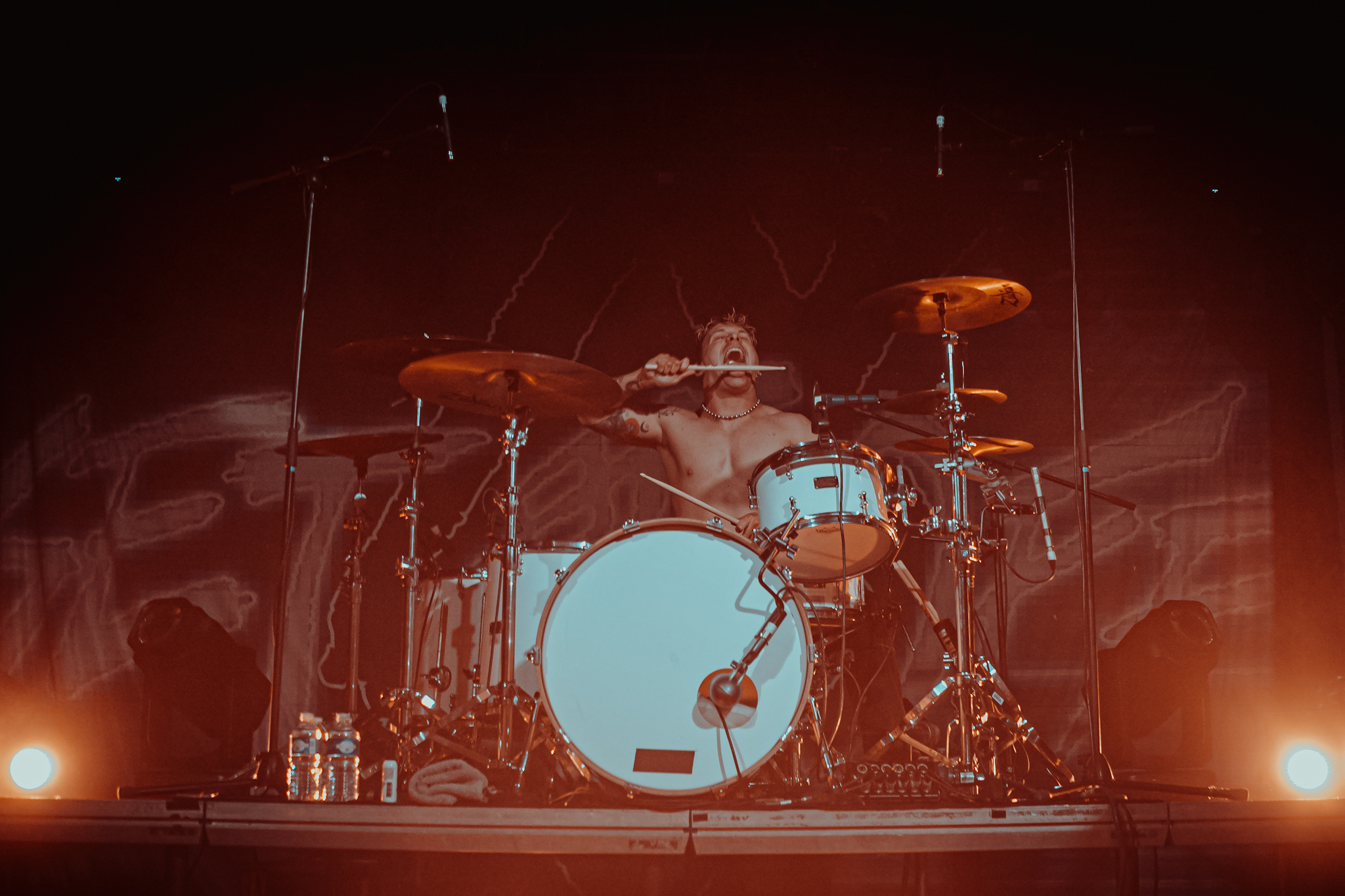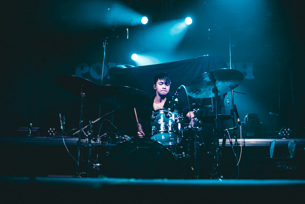 Jedeme dál, vzhůru na sever. Jak by totiž napověděla plachta, nebyla-li by schována za majestátními bubny headlinerů, stage přebírají Point North. I když tady mě má metafora trošku zrazuje, geograficky i pocitově. Pánové jsou totiž losangeleskými sousedy Set It Off a teplota v Meetku se tou dobou už také začala přibližovat rovníku. (Tímto bych chtěla vyslat jedno velké díky hodným duším stojícím přede mnou, které si donesly vějíř.)