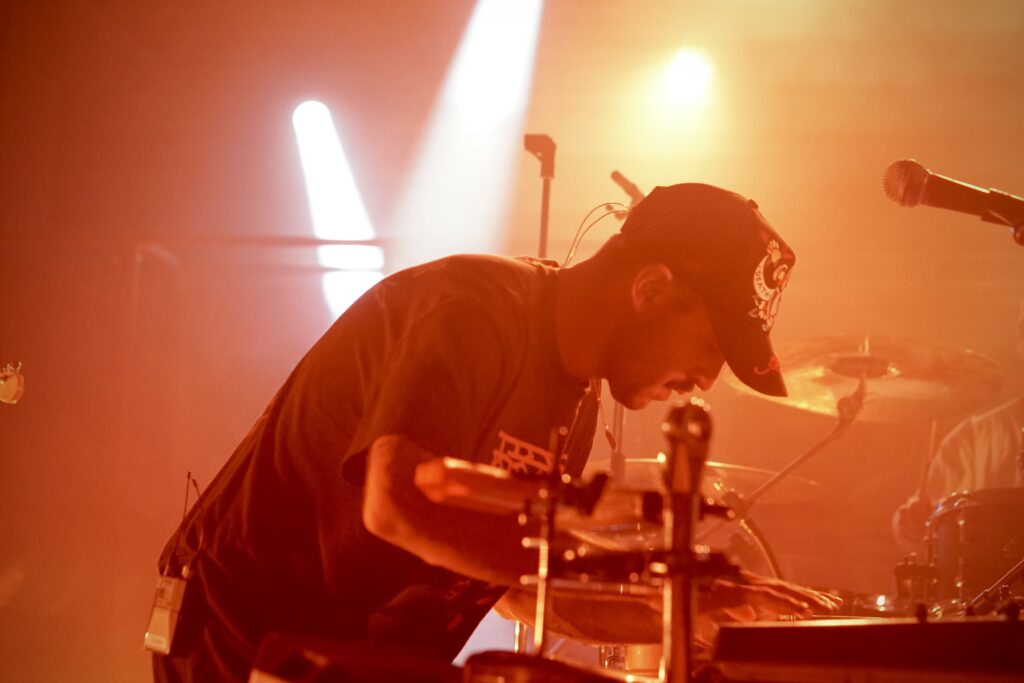 Ať už jde o festivaly či kluby, sety Leoniden totiž pojí jedna jasná konstanta – jedná o pravou zkoušku vaší fyzičky. A jinak tomu nebylo ani tentokrát. Pětice z Kielu zas a znovu dokazuje, že i skrz chytlavé melodie se dá tlačit energie jak na hardcorech, a to včetně wall of death a moshů, jež se otevírají hned v prvních minutách našlapaného setu. V druhé části pak dochází i na lehčí circle pit povznášející vysmátého zpěváka Jakoba bušícího do cow bellu. Kapela (a zejména kytarista Lennart, který si díky svým pověstným otočkám, dřepům a dalším brikulím musel střihnout solidní leg day) mezitím na pódiu rozjíždí vlastní párty a já tak jen nevím, kam očima kmitat dřív.
