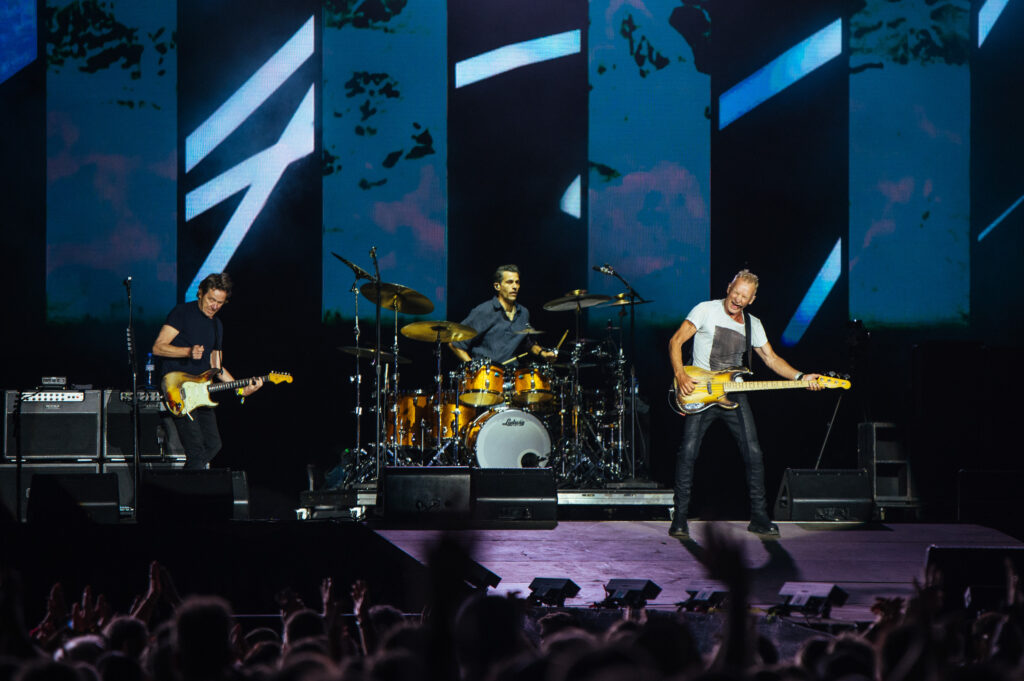 Poté už nadešel vrchol večera, ba dokonce možná celého festivalu – Sting. Jeho koncert se stal definicí oslavy čisté lásky ke kytarové hudbě. Netřeba promluv mezi skladbami, celé to působí jako výjimečné přizvání k účasti na komorní zkoušce hudební legendy. Sting na aktuálním turné vystupuje v rámci tria – sám hraje na baskytaru, doprovází jej Dominic Miller na kytaru a Chris Maas na bicí. Právě tato domnělá „hudební jednoduchost“ se stala klíčem k perfektnímu zvuku a symbióze všech nástrojů. Co skladba, to hit – v tomto provedení často doplněný o kytarová sóla, u kterých si přejete, aby nekončila. Série celodenních překvapivých hostů byla dovršena až zde, protože Shaggy svému kamarádovi oplatil stejnou mincí a vpadl (samozřejmě s jamajskou vlajkou v ruce) na stage při druhé sloce hitu „Englishman In New York“, který se rázem přetvořil v „Jamaican In New York“. Ačkoliv samotnému Shaggymu jsem na chuť nepřišla, tohle duo překvapivě funguje. Konečně chápu, jak se posluchači cítili na koncertu Dua Lipy, když si přizvala Ewu Farnou. Přídavková „Roxanne“ a dojímavá kytarová „Fragile“ byly už jen třešničkou na dortu. Jak v závěru řekl samotný mistr: „Díky!“ (Den poté byl oznámen jeho další koncert v Česku – 18. října 2025 v Brně. Znovu pouze v triu, vřele doporučuji!)