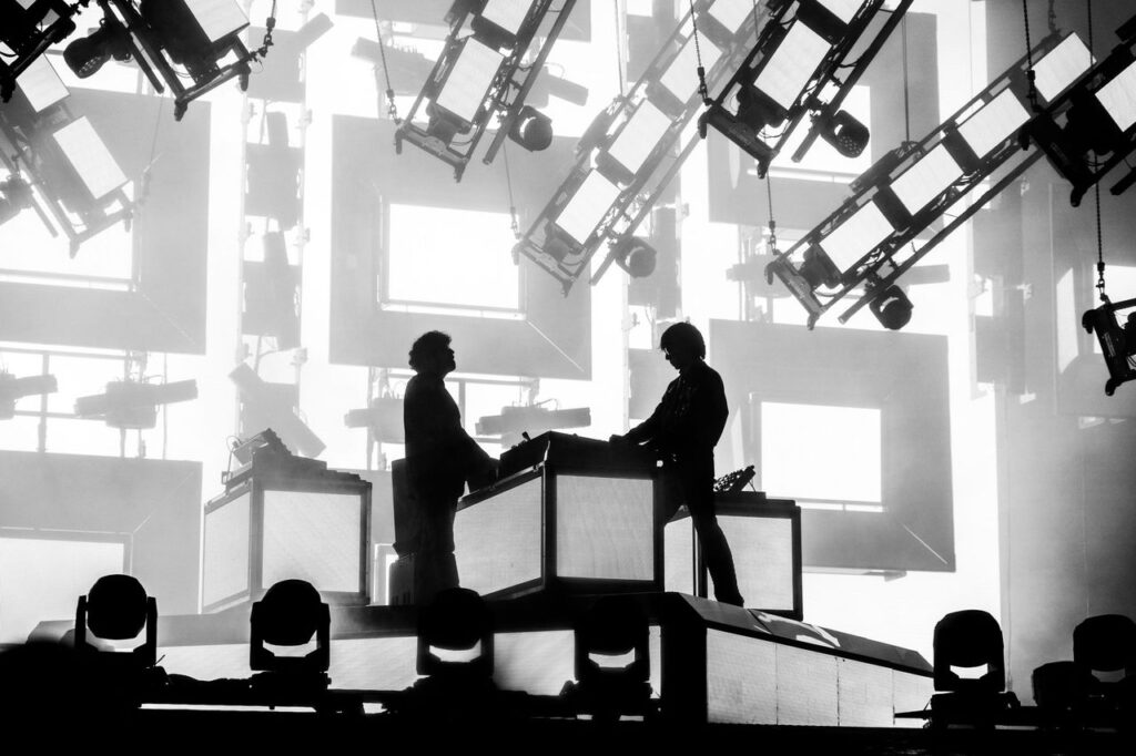 Pozice druhého headlinera připadla francouzskému elektronickému duu Justice. Zájem o jejich show byl sporný – pár minut před začátkem se stále dalo bezproblémově dostat téměř dopředu, odkud navíc lidé postupem času ještě odcházeli (tak to ale chodilo téměř u všech setů, kterými si mnozí návštěvníci zřejmě nebyli žánrově jisti). Justice si však své posluchače našli a nadšení postupně gradovalo, zejména u „D.A.N.C.E.“ a „We Are Your Friends“. I kdybyste se zuby nehty bránili tanečnímu rytmu pulzujícímu všemi těly, stále je minimálně co sledovat. Světelný design je natolik hypnotický, že se cítíte jako v chrámu elektra (ostatně logem dua je kříž), opakovaně se zvedají a klesají světelné rampy či nakonec samotná stage. Justice se stávají siluetami, co se někdy vynořují, jindy zase zdánlivě mizí. Závoj tajemnosti byl stržen v upřímném závěru – bonusovým přídavkem se stalo osobní zdravení fanoušků podél barikády. Nemůžu se však zbavit dojmu, že šlo spíše o ukázku Beats for Love snesitelnou i pro většinové posluchače.