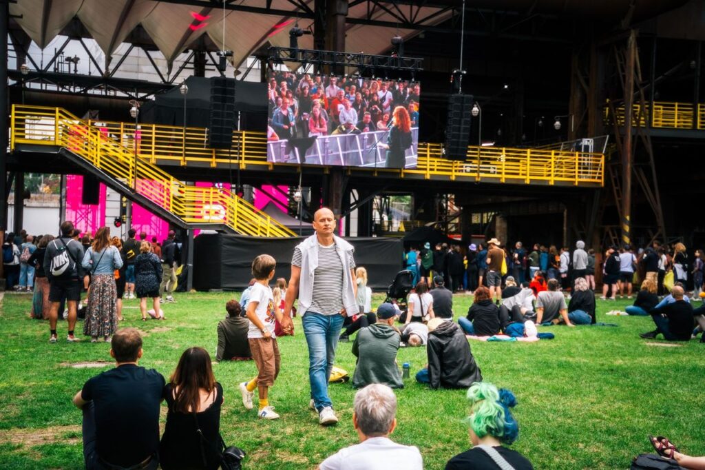 Na hlavní stagi se představil skladatel Jung Jaeil s Janáčkovou filharmonií Ostrava. Ten je autorem hudby např. k seriálu Squid Game a filmům Mickey 17 nebo Parazit. Právě tyto soundtracky zazněly naživo, doplňovaly je projekce k daným audiovizuálním dílům. Pro někoho jistě zajímavá záležitost, ale v tomto případě nedoceněná. Spoustu Colours koncertů působí, že slouží pouze jako zvuková kulisa k rozhovorům se znamými, což se mi potvrdilo i zde. Navíc část posluchačů odcházela po úvodu věnovanému Squid Game, čímž rušila ostatní. Hodil by se uzavřený prostor pro opravdové zájemce – vždyť Gong je jen opodál (letos však využíván zejména k divadelním produkcím).