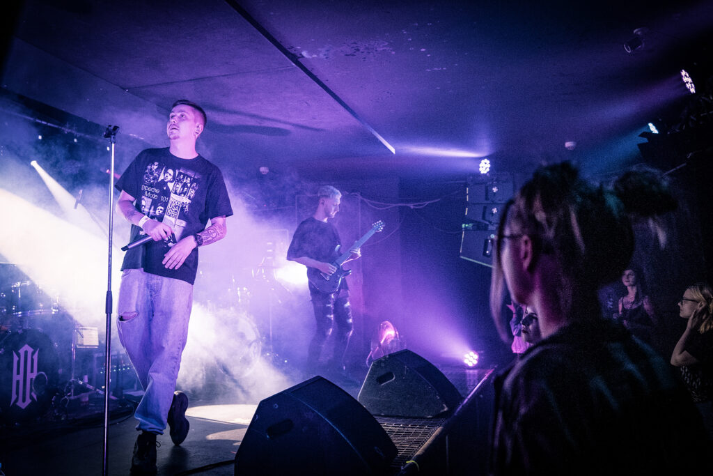 Čtvrteční večer otevřeli Abyss, Watching Me, původně ruská, teď pražská post-hardcorová parta v čele s Egorem Erushinem (ex Marina). Kapela se postarala o nahození příjemné atmosféry, ačkoli v půlce Egor poznamenal: “Je to moc pomalý, co?” načež mu publikum odpovědělo: “Chce to breakdowny!” No a tohle byl trochu kámen úrazu celého setu. Celá kapela totiž předvedla dobrý výkon, Egor má parádní čisté vokály, refrény hezky harmonizovaly, dokonce i ty breakdowny pak přišly. Nicméně kluci byli prostě nervózní, nebo to tak minimálně vypadalo. Egor neustále kontroloval čas a za něco se omlouval, kytarista Václav se pral se samply, song „Losing“ uvedli tím, že je to o tom, jací jsou to lúzři. To by za normálních okolností asi pobavilo, ale tady si kluci celý večer zbytečně podkopávali nohy. Věříme, že prostě jen neměli den den, protože určitě stojí za to si je poslechnout.