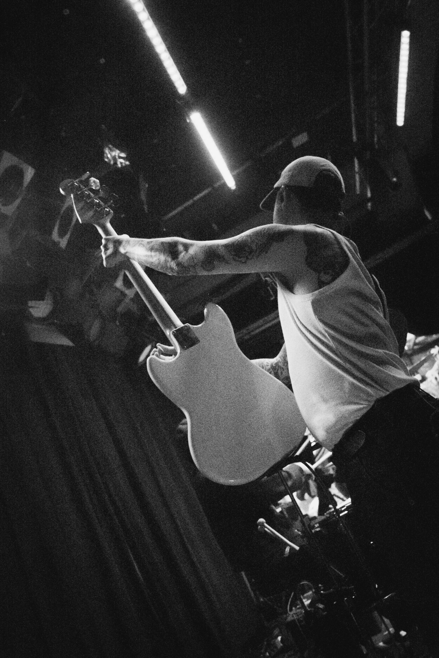 Druhý s uvědoměním, že krásné jemné vokály nepřichází (jak je zvykem) z popředí stage, ale od hory jménem Mike Hayden, jež u nich zvládá zároveň mlátit do bubnů. Poslední chybný předpoklad je pak vyvrácen zjištěním, že naspeedovaná tečka běhající pod pódiem není skalní fanoušek, ale frontman Adam Rigozzi, který se rozhodl, že stage je luxus, ne nutnost, a většinu setu strávil přímo v davu. Ono pódium by mu ve změti vlasů a pěti namačkaných muzikantů bylo pravděpodobně stejně malé.