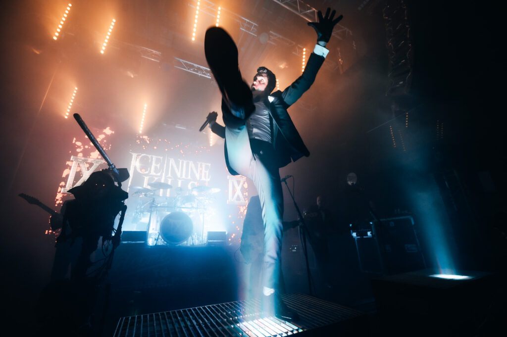 A totéž platí i o hvězdách večera, před desátou hodinou večerní nastoupivších Ice Nine Kills. Na začátek vystoupení headlinera je to možná kapku pozdě, ale Ice Nine Kills nejsou headlineři jen tak ledajací. Navždy spjati s vůní starých videokazet, tajemstvím nepřístupných filmů a legendami žánru, před nimiž se třesou i dávno dospělí, na hororové příběhy je ten nejlepší čas právě pozdě v noci. A že jimi Ice Nine Kills nešetřili! Během kratinkého hodinového setu rozehráli na podiu hororovou show, jakou Praha ještě neviděla. Na stagi si v průběhu večera dali rande Freddy Krueger, Michael Meyers, To, Norman Bates i Reagan z Vymítače ďábla.