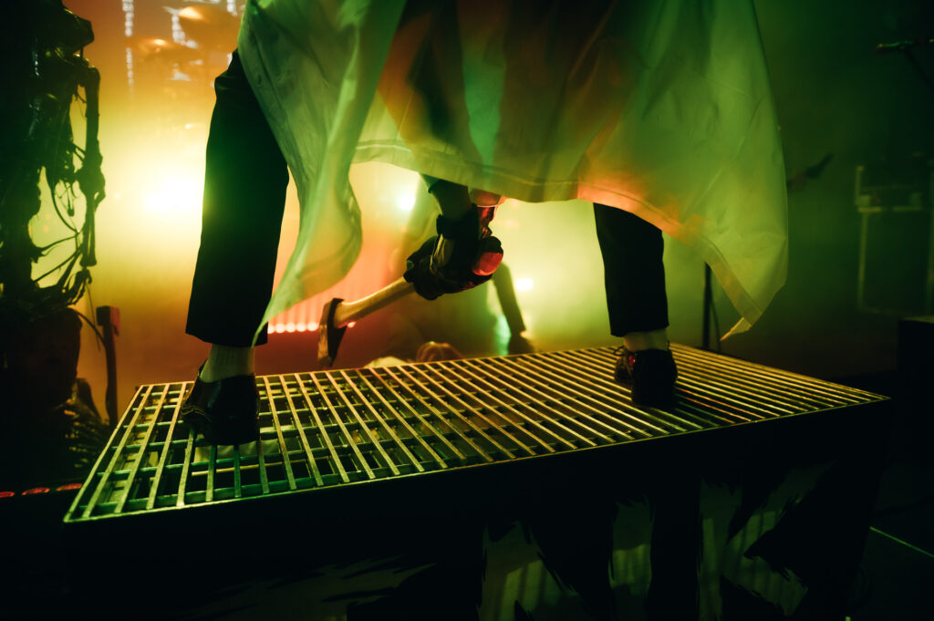 Nezůstalo samozřejmě pouze u hudebních zpracování slavných hororových filmů – Ice Nine Kills ve své show kombinují hudbu s divadlem a kapela v průběhu večera oblékla nejeden kostým a vzala do rukou nejednu tematickou proprietu. Spencerovi v rolích slavných vrahů a monster zdatně sekundovali převlečení herci znázorňující neméně slavné hororové oběti – to aby měl zpěvák během přehrávání ikonických scén slavných bijáků koho zapichovat a vymýtat. Míhající se sekáčky a motorovky mísící se s chytlavými refrény a tvrdými breakdowny tak místy kazil jen naduněný, těžko čitelný zvuk a přemíra suchého ledu – po umírněném bafání během Skynd kapela osolila plynomety na sto dvacet procent a místy se divákům ztrácela v oblacích kouře.