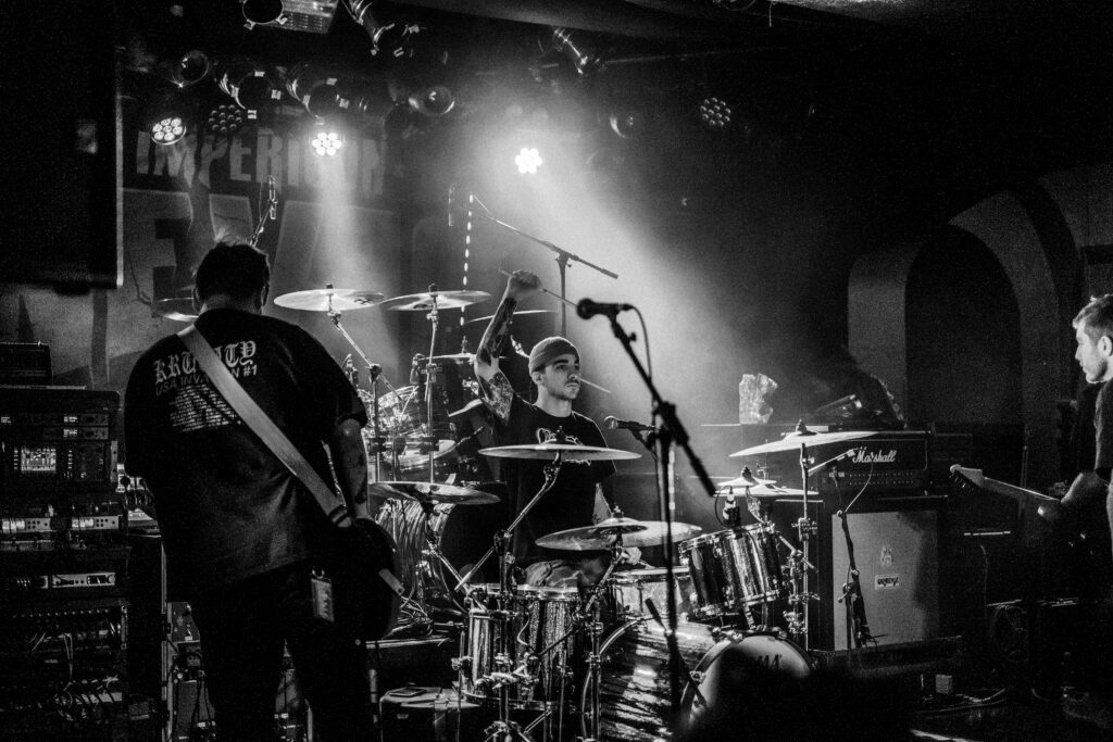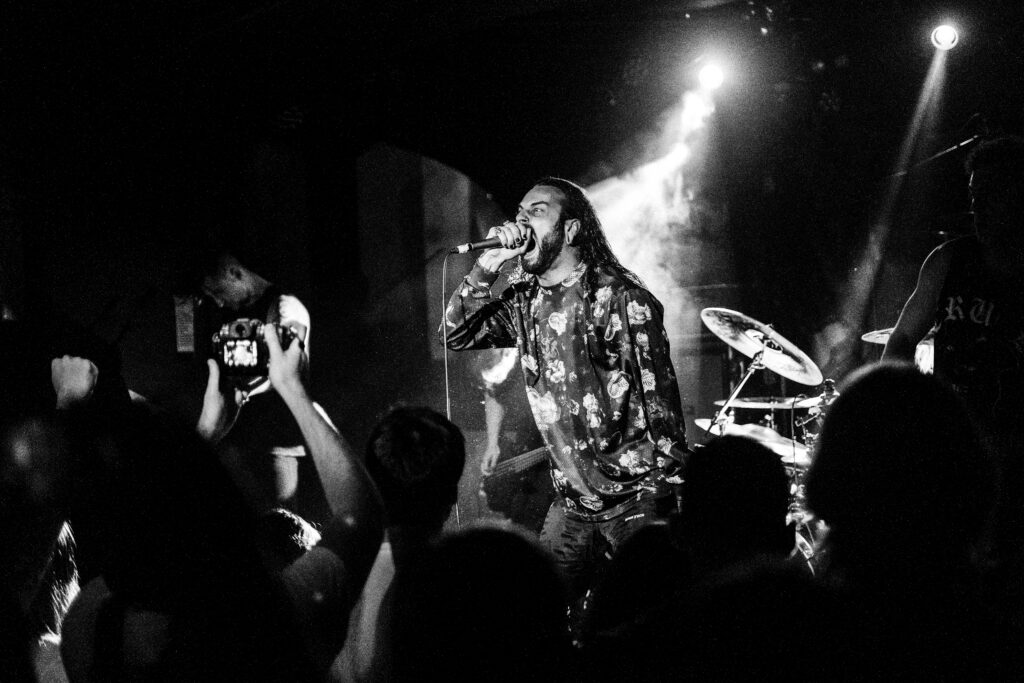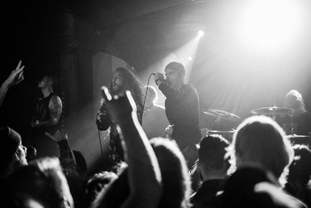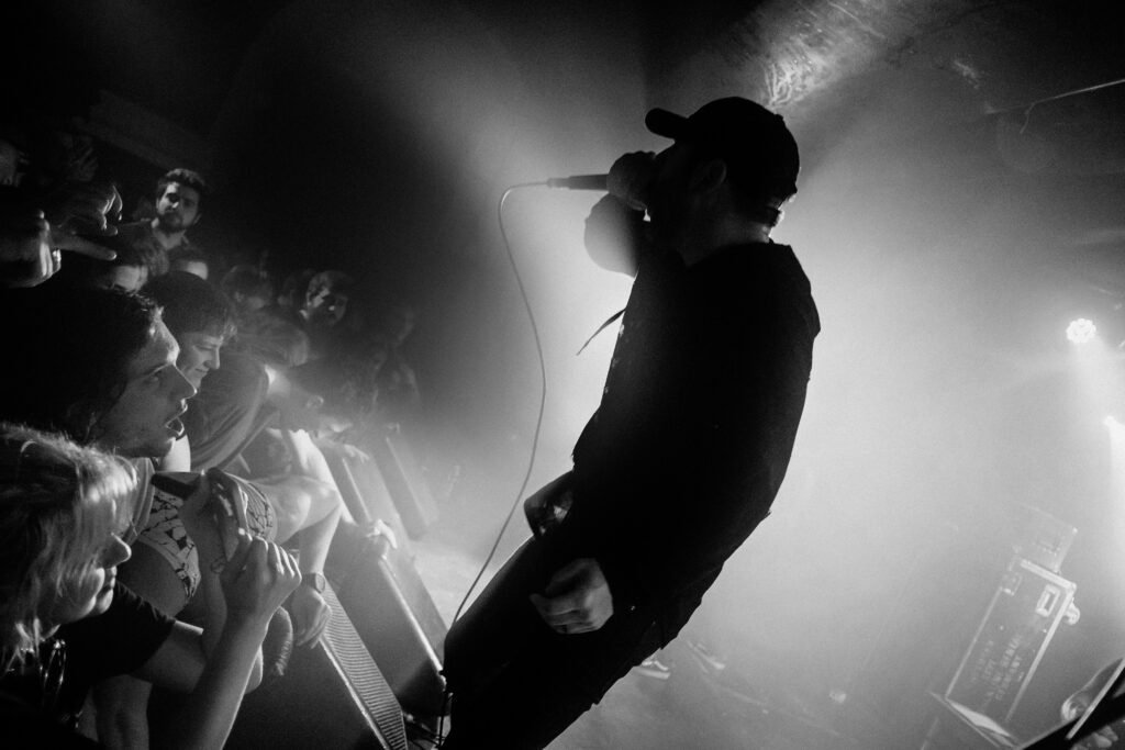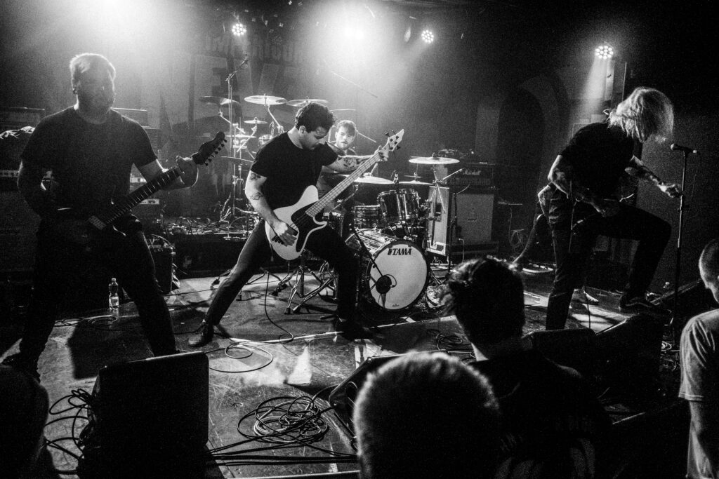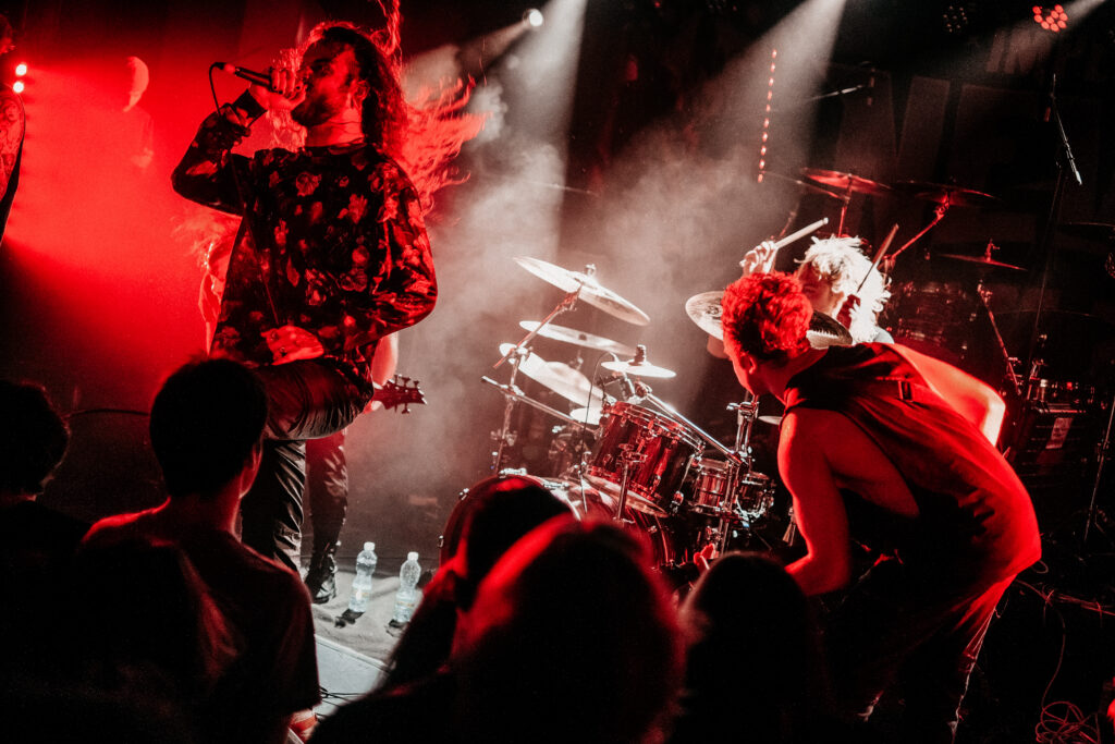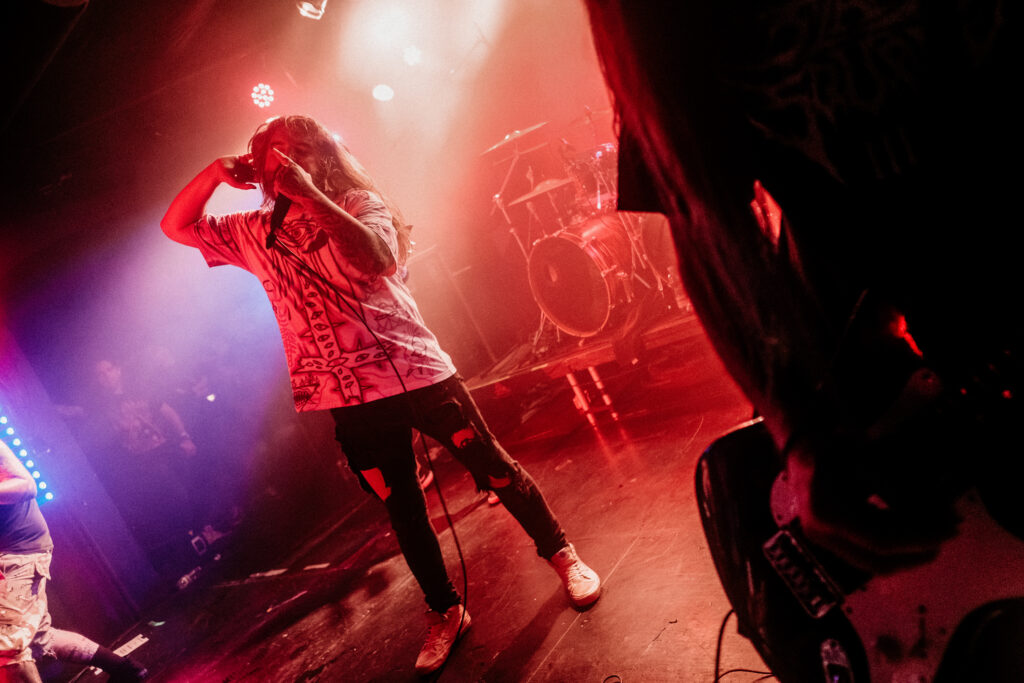 V tuhle chvíli hodně oceňuju vzduchotechniku v klubu, protože je tady pořád ještě relativně dýchatelno. Bez zbytečných řečí přicházejí Currents. Hrají spíš novější věci z posledního alba The Way It Ends a já se hned dvakrát dojmu. Prvně při The Death We Seek, kdy se mezi zmítajícími se těly z moshe sborově ozve refrén, a podruhý při Better Days, kdy zní „For better days we’ve waited for how long?“ úplně celým klubem. Slzička skoro ukápne, ale vlastně pořád ještě nemám dost dupání do podlahy, a tak se těším na After the Burial. Ti na sebe nenechají dlouho čekat, přece jen na dlouhý pauzy tady není čas. AtB nás nešetří, riffy se zařezávaj jak motorovka, při Behold the Crown se rozpoutá totální mayhem a na Lost in the Static už to nevydržím ani já a letím do moshe. K mýmu štěstí pak dojde k delší promluvě frontmana Anthonyho, a já tak můžu popadnout dech. Anthony se rozpovídá o tom, že si během COVIDu prošel depresemi a že začal chodit na terapie a taky upozorňuje na to, že v těchhle sračkách nikdy nejste sami. Hlavní message je ale směřována mužské části obecenstva, protože zmiňuje, že chlapi taky brečej a není na tom nic divnýho: „As dudes we were always told to be tough […] fuck that shit, the stigma is gone!“ Na tohle téma navazuje skladba Quicksand a my se pomalu ale jistě blížíme ke konci.