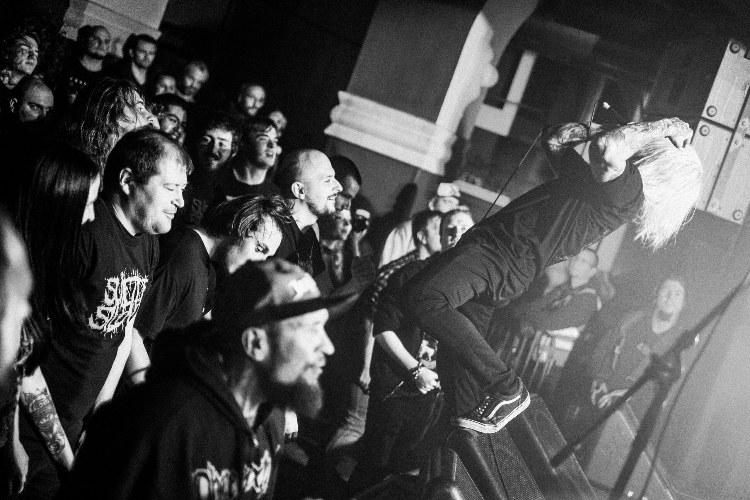 Na stage nastupují Invent Animate a já si bláhově myslím, že trochu zvolníme a podmaní si nás Marcusovy čistý vokály. To se sice stalo, ale tenhle večer má asi jinej vibe, protože jakmile se rozjede The Sun Sleeps, všem totálně hrábne. Můj palec na noze zažije už asi osmý dupnutí, ale tlemím se jak měsíček na hnoji, protože Marcus teda zpívá fakt božsky a žádnej breakdown nepadne vedle. Dočkáme se i jednoho dosud nevydaného singlu, který je doprovázen ukázkovým circle pitem. Abych nebyla ale jenom sluníčková, musím říct, že mě kontrast mezi nekompromisním deathcorem Cabal a zpěvným metalcorem Invent Animate trochu unavil.