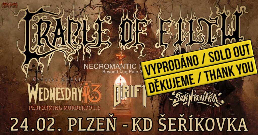 Cradle of Filth se do Čech chystají hned dvakrát a ani jednou to není pražská zastávka. První zastávkou bude Plzeň, a to 24. února, a následně o den později na Flédě v Brně, tedy 25. února. Oba koncerty jsou už nějakou dobu vyprodané a to znamená jedno – pořádný večírek.