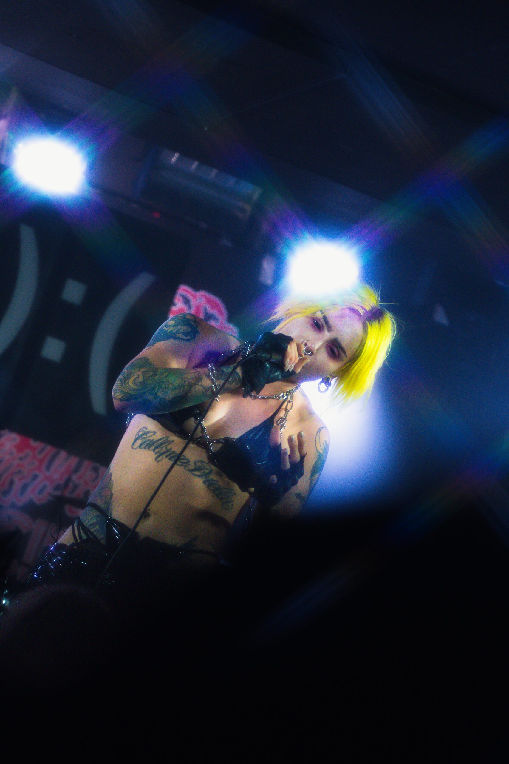 Otvíračku nám připravili Noisy a Mimi Barks. Jestli něco bylo překvapením, tak rozhodně Mimi Barks. Člověk čekal bizárek – hlavně na základě prezentace umělkyně – a ono to vlastně bylo naživo kurňa dobrý! Tahle worm girl (jak má v biu na Spotify) má na kontě dvě alba – debutové Enter the Void vyšlo v 2019 a o tři roky později následovalo DEADGIRL. Počátkem letošního února zveřejnila singl „FSU“, který samozřejmě nechyběl v setlistu.