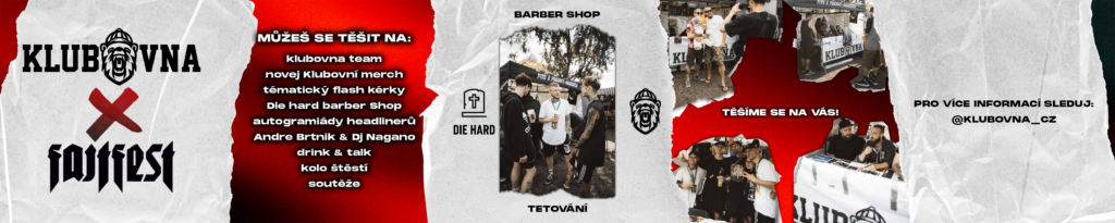 Svou hodinu slávy mimochodem dostane i náš DJ Nagano neboli Hadrabák. Nejpopulárnější člen Klubovny a festivalová afterparty legenda bude samozřejmě i letos hlavním tahounem klubovní Pouštěčky, která letos proběhne hned dvakrát. První příležitost budete mít na Klubovna x Die Hard preparty, jež proběhne ve středu 6.7. za účasti kapel Filthyminds, Bad victim, Diligence a Depression Island. O zábavu se pak večer zčásti postará tým Klubovny a zčásti osazenstvo Die Hard barber shopu.