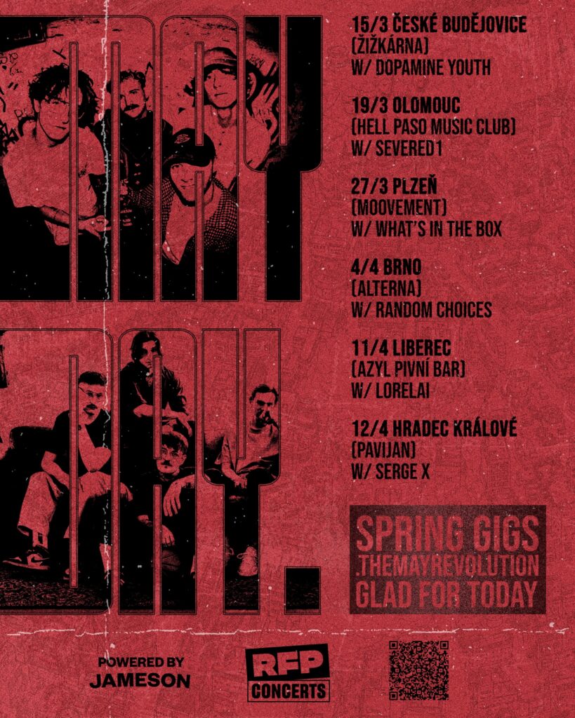 A v Hradubicích ještě chvilku zůstaneme. Hned den nato totiž GFT odstartují tour po boku neméně oblíbených .themayrevolution. Power duo z východních Čech, záštita Jamesonu a Rock for People Booking, jeden měsíc, šest zastávek a řada neméně zajímavých, lokálních hostů. Stavit se můžete na již zmíněné What’s In The Box, rock-funkové Random Choices, Lorelai se svým emíčkovým hardcorem, Hawaii metal v podání Severed1 či Dopamine Youth vezoucí se na vlně alternativního grunge-rocku. Závěrečnou zastávku pak doplní alt-rockoví EXPOST a více k indiečku přiklonění White Fruit Honey. Takže, kam to bude?