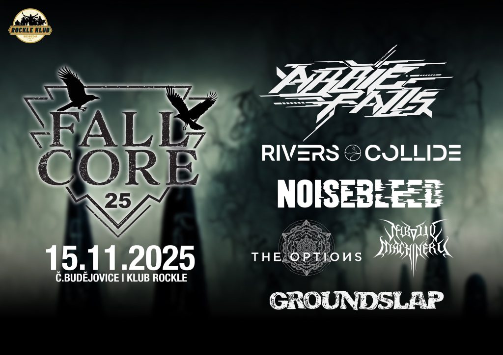 Moc informací? Jsme teprve v polovině. Nemůžeme opomenout domácí scénu a začněme s The Options, kteří se dostali do finální trojice v boji o vystupování na Halloweenu. To naznačuje, že nás skutečně zaujali a rozhodně se vyplatí zůstat na pozoru. Na Fallcore představí zbrusu nový singl „Sandpaper“ – tvrdé hardcore riffy, breakdowny a atmosféra, která tě vtáhne přímo do centra moshe. Pokud máš rád moderní metal říznutý djentem, tohle vystoupení nesmíš minout. Budějovice zároveň zastoupí i novicové Groundslap. Čtyřčlenná kapela vznikla v roce 2024 a její muzikální projevy jsou surové, energické a přímočaré. Album Unity (2025) a EP L.U.T.I. (2024) představují tvrdý zvuk, který zaujme všechny fans hardcore hudby a přináší do Fallcore novou dynamiku. Jako headlineři přijedou Abbie Falls, kteří budou mít tou dobou za sebou další zahraniční tour a před sebou vydání desky. Momentálně nejviditelnější domácí corovka si to s domácí koncerty dlouhodobě šetří a bůh ví, kdy se zase na jihu objeví. Tohle by byla věčná škoda prováhat.