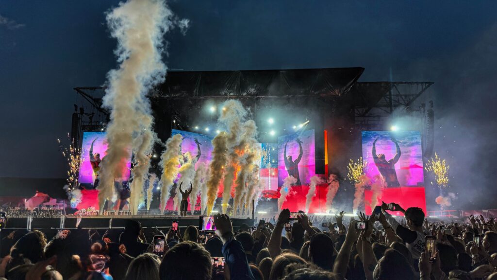 Během večera jsme se dočkali především osvědčených hitů, které fanoušci Imagine Dragons milují už roky – zazněly hymny jako „Believer“, „Thunder“, „Demons“ nebo „Radioactive“. Atmosféra gradovala s každou další známou melodií a kapela přesně věděla, co publikum potřebuje slyšet. Přesto si našla prostor i pro klidnější část, která ukázala jemnější stránku jejich tvorby. Akusticky jsme slyšeli písně „Next to Me“ a „I Bet My Life“, kterou frontman kapely Dan Reynolds poslal své dceři na dálku. V těchto chvílích koncert zvolnil a pódium se proměnilo v intimní hudební prostor, kde vynikl Reynoldsův hlas a síla samotných textů. Byla to vítaná rovnováha mezi velkolepou show a čistým hudebním prožitkem.