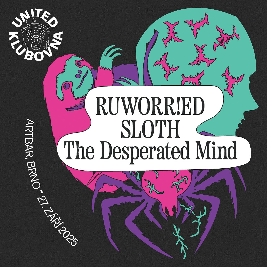 Česká naděje, která už proniká do zahraničí. Po boku YUNGBLUDA ukázal, že má charisma i hlas, který patří na velká pódia. Ve spolupráci United Klubovna zahraje vlastní set, a to je šance být u toho ještě dřív, než ho budeš vídat na festivalech v roli headlinera. Společně s ním se objeví Sloth a The Desperated Mind.