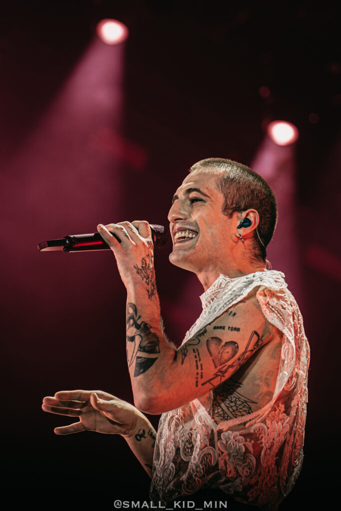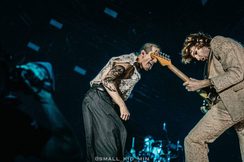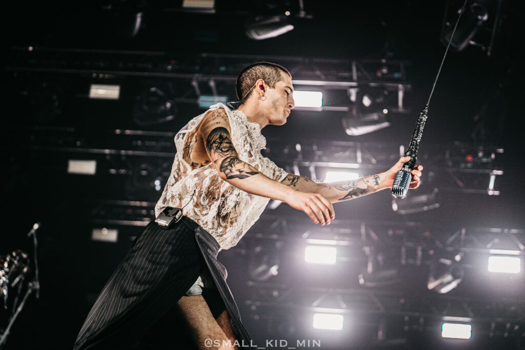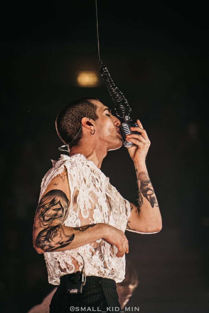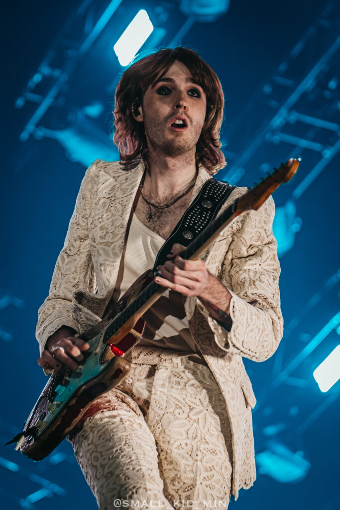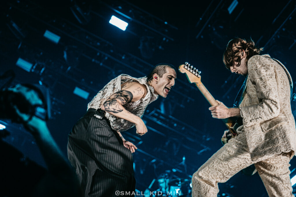 Co naštěstí naplněno nebylo, byl můj skepticismus vůči faktu, že si s sebou Måneskin nepřivezli žádný support. „Hmm, divný. Nebude tomu takhle ze začátku chybět hype?” Pfff, vůbec. Energie měla totiž celá kapela na rozdávání, což se rychle přeneslo i do řad publika. Při prvním songu to rozjela barikáda, při druhém už skákaly i zadní řady a když došlo na třetí „ZITTI E BUONI”, neodolaly už ani nejvyšší balkony. Celá O2 arena byla na nohou a nastal mayhem, v jehož duchu se to vlastně vezlo až do konce.
