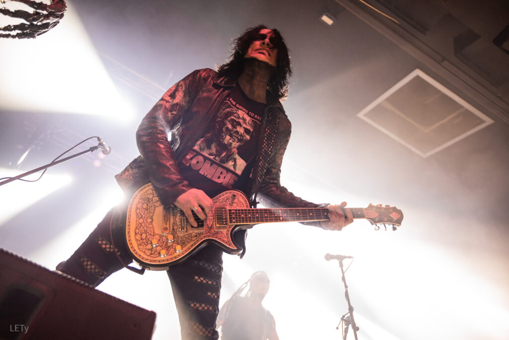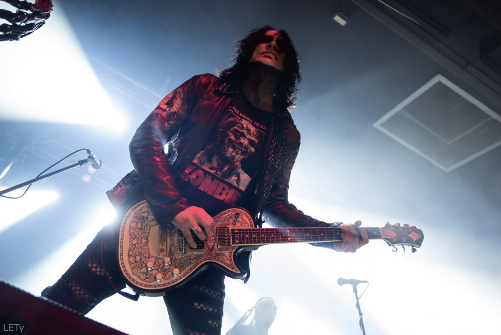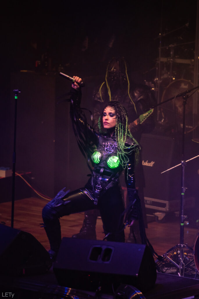Druhou kapelou večera byli alternativně metaloví Sick N‘ Beautiful z Říma. Tahle banda už mi byla trochu sympatičtější. Možná to bylo i díky výraznému zlepšení zvuku. A ačkoliv mi jejich styl nic moc neříká, tak jsem si set užil. Možná na tom měla podíl jejich show – zpěvačka s laserovýma prstama, broušení kytary a hořící knížky – to jen tak někde neuvidíš. 😀