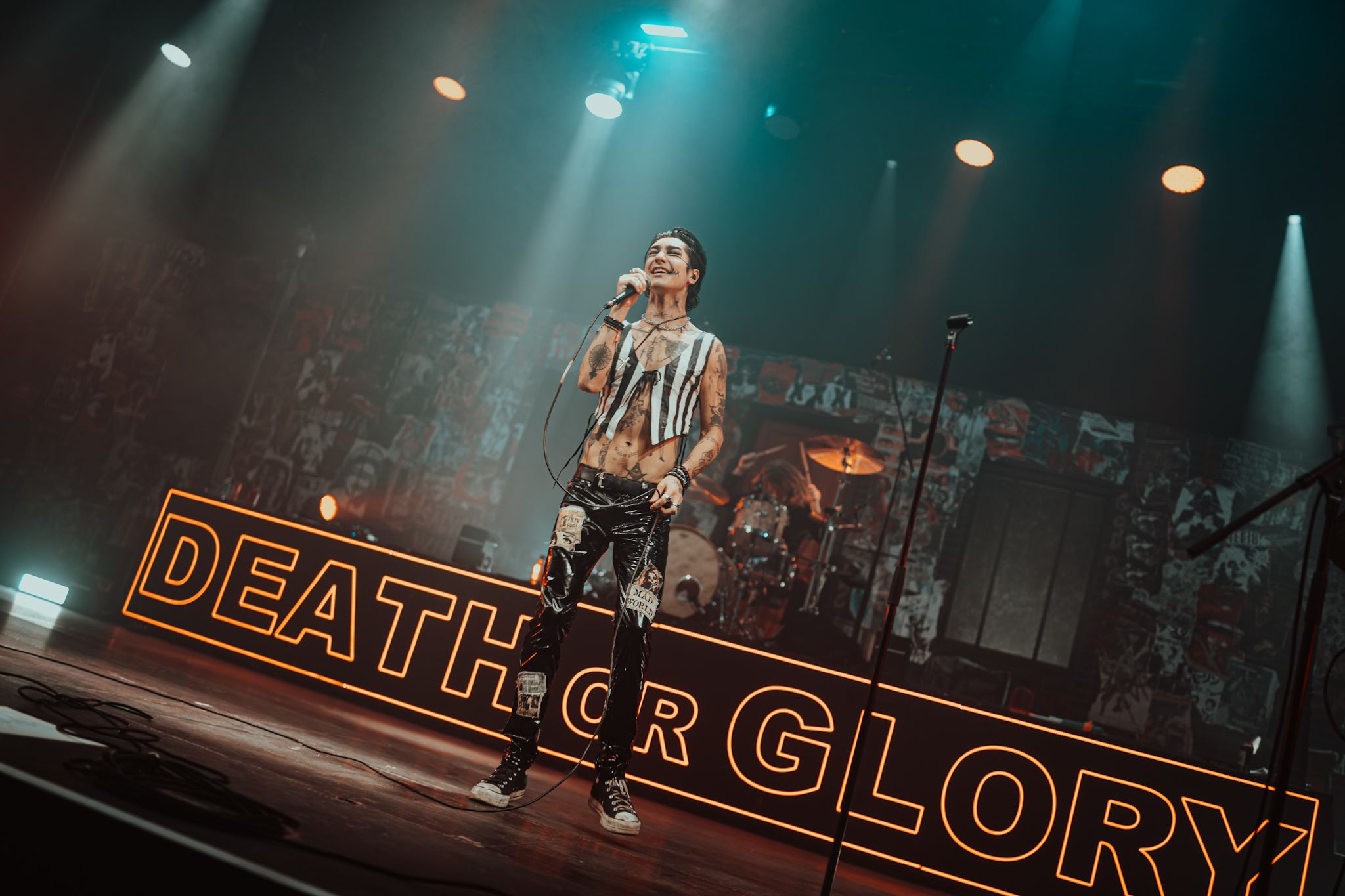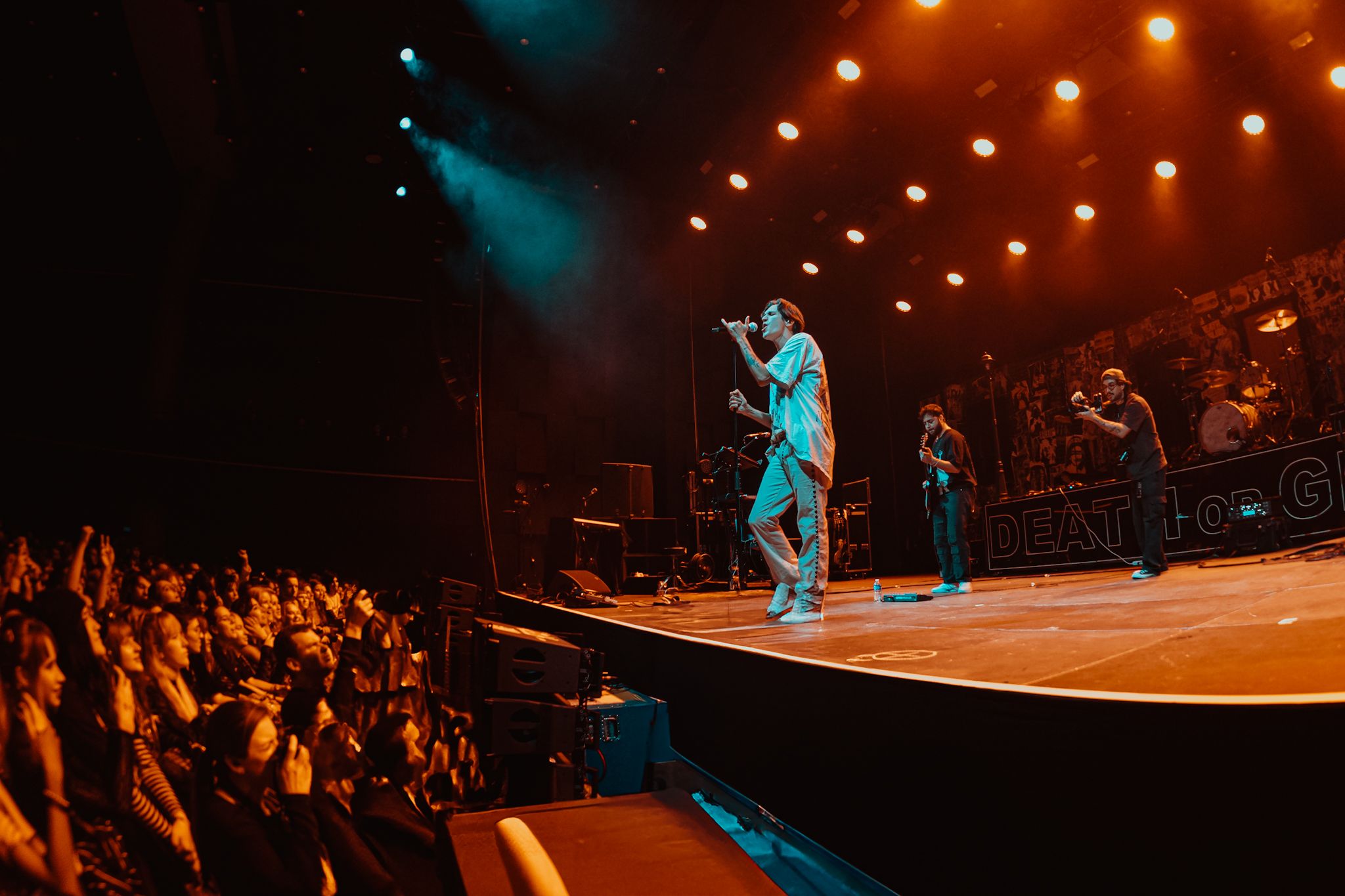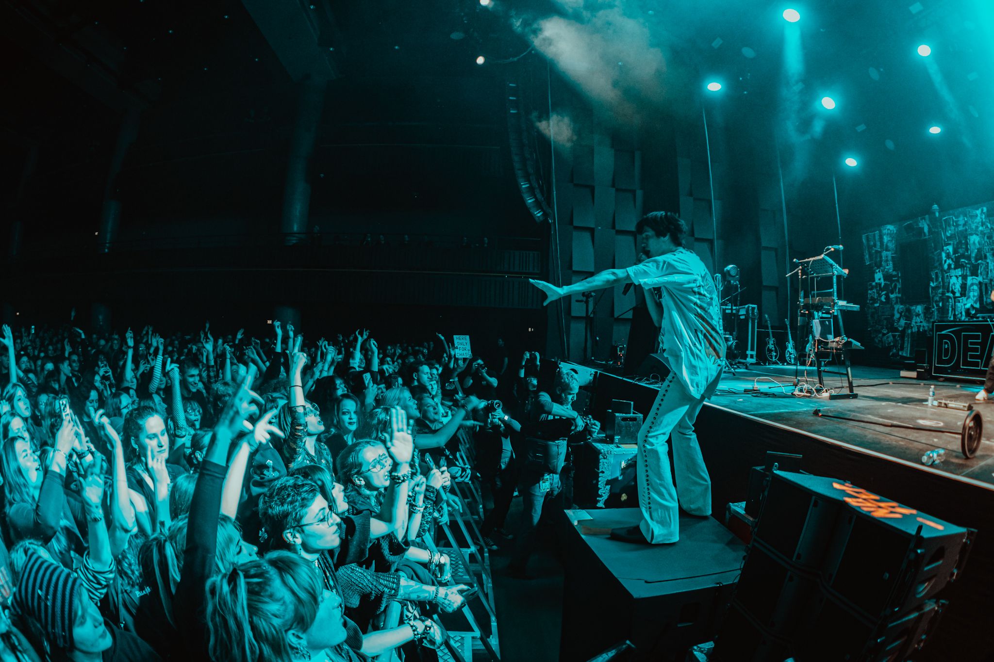 Tady nejde jen o prázdné: „Tohle je ta nejlepší show celý tour… vůbec to nebudu zítra říkat znova… fakt…“ Vždyť pojítka mezi Palaye Royale a Prahou, symbolizované i českou vlajku na stagi, sahají hluboko pod pozlátko katalogu odehraných koncertů. Ať už jde o inspiraci pro album Fever Dream či crew s četným českým zastoupením, šlo by s nadsázkou říct, že jsme si tohle trio z Los Angeles docela obstojně adoptovali. (Fun fact: věděli jste, že Praha je dle Spotify městem, kde Palaye Royale poslouchá vůbec nejvíc lidí?)