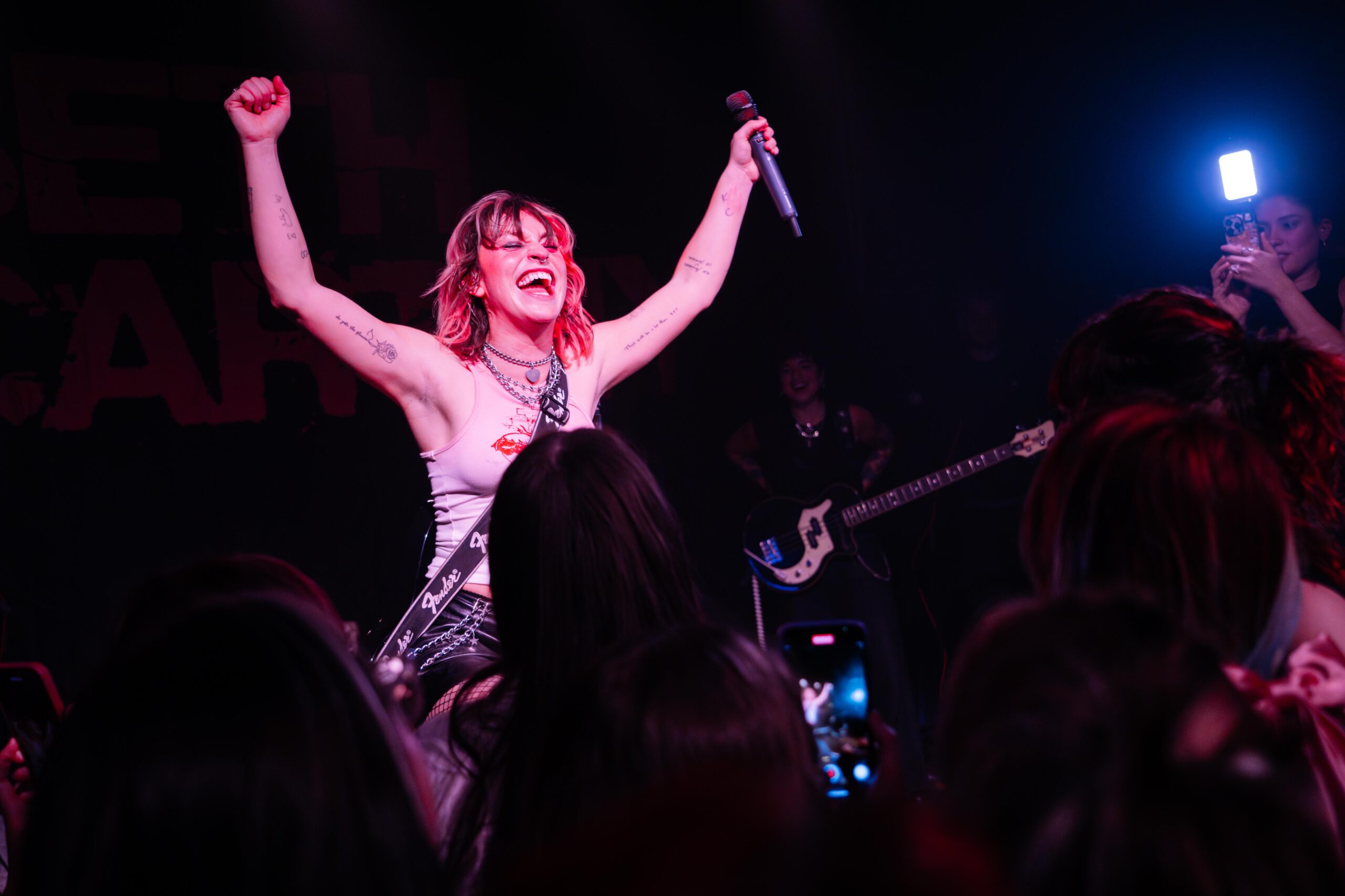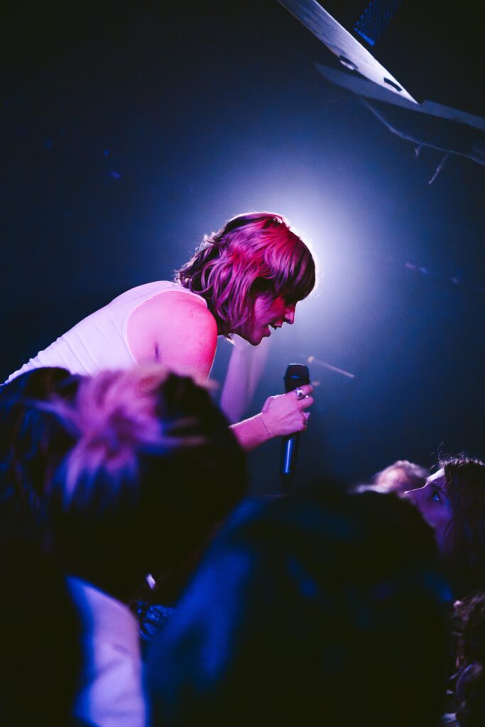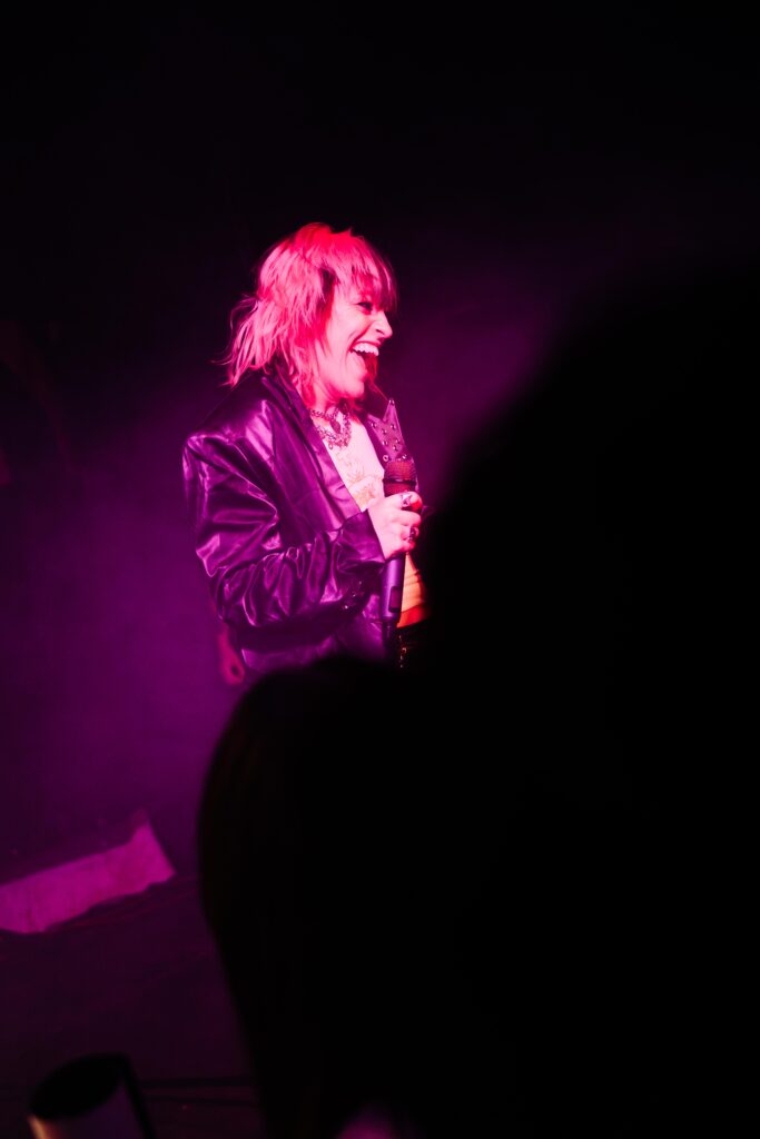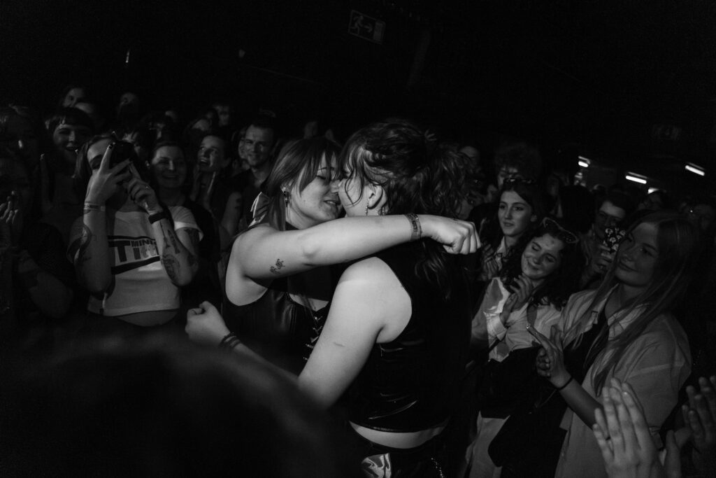 Klub se během jejího setu zaplnil, přestože nějaký volný prostor stále zůstal, a na scénu následně přišla růžová smršť, která na sebe strhla okamžitou pozornost – nejen hudební, ale i tu vizuální. Hot and Stupid večer začal právě s „Cubicle in Heaven“, který je jedním ze singlů z nového EP. Následovala klasika v podobě „IDK How To Talk To Girls“, „You Up“ nebo ikonická „Good Bi“ či „She Gets The Flowers“, kdy si místní fanbase dokonce v průběhu songu připravila bannery. Beth mezi songy neopomněla ani vtípečky a různá moudra či dokonce přejmenování fanouška na Lunu – následně mu věnovala singl „What Do You Call It“. Mávaní českou i duhovou vlajkou a svícení telefony nemá úplně smysl jmenovat, protože to k ní jednoduše patří. Kdo sleduje Beth nějakou dobu, ten dokázal odhadnout, co všechno se v průběhu večera stane. Co ale nikdo nečekal byla žádost o ruku přímo v davu, která dojala nejen publikum, ale i samotnou zpěvačku.