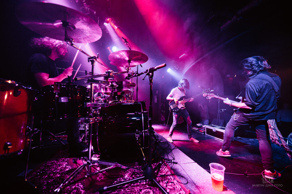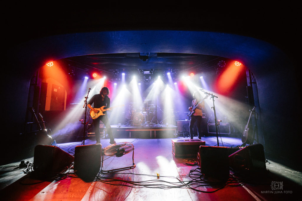 První kapelou pátečního večera byli Seventh Passion, melodickej rock’n’roll z Plzně. Zvuk je postavenej na kytarovejch sólíčkách, uměla bych si je docela dobře představit jako soundtrack k filmu Od soumraku do úsvitu – takovej ten mexickej bar, o kterej se opírá vostrej Danny Trejo a v pozadí hrajou Seventh Passion jejich song Ugly MF. Zahráli setlist postavenej víceméně na starších věcech, ale prej horečně makaj na nový desce, tak uvidíme.