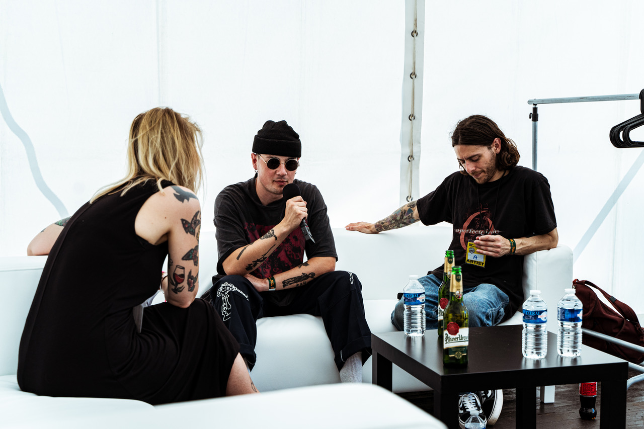 Britské IDLES asi netřeba příliš představovat. Rocková kapela z Bristolu do Česka zavítala už podruhé, po pandemii byl návrat o to radostnější. Krom skvělé show nám věnovali kytarista Mark Bowen a zpěvák Joe Talbot pár minut ve vyhřáté backstage. Ačkoli