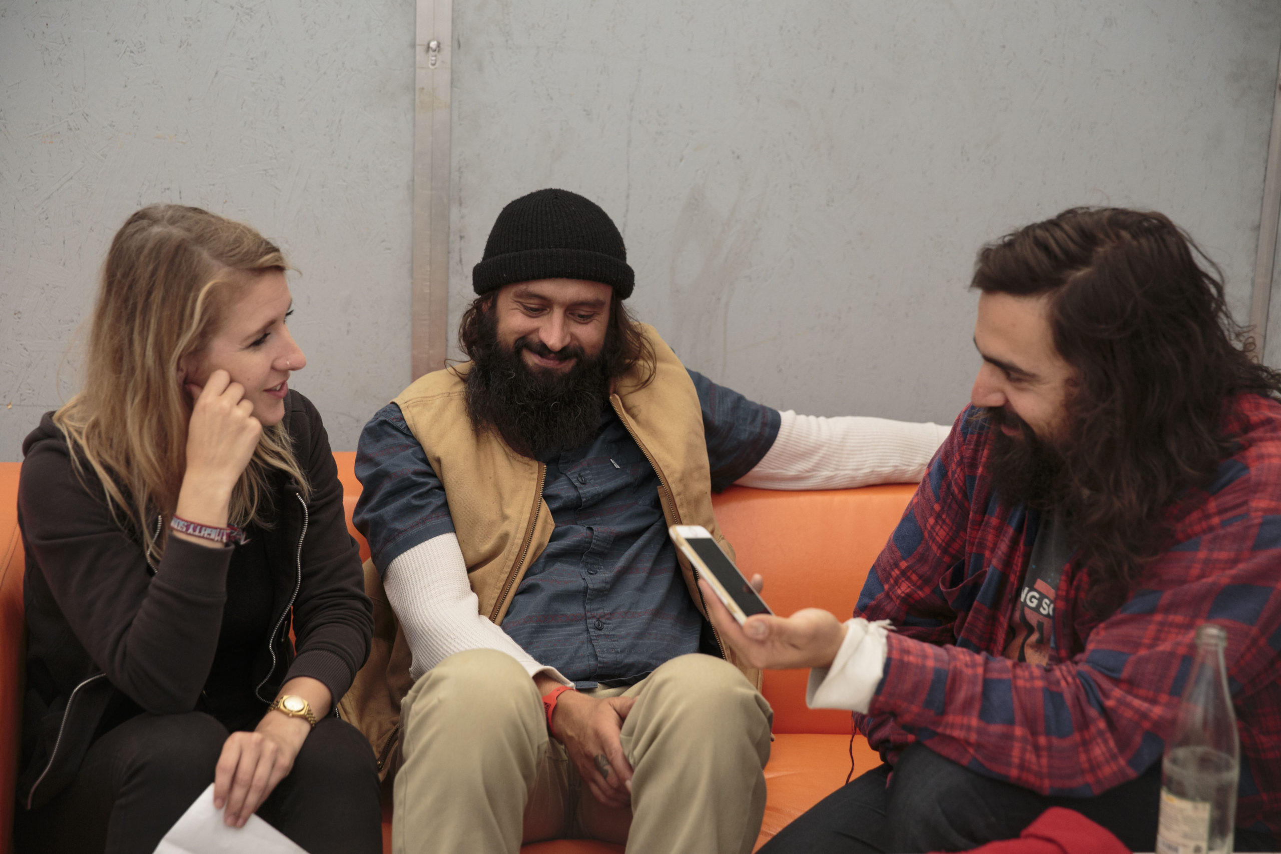 Fynn: No, jsme skejťáci a když se Phillip přestěhoval do toho nejkrásnějšího nejmenšího města na světě, haha, tak to bylo, jak jsem říkal na stage, ve městě, kde nic není. Žádnej cool bar, cool kapela, nic. A ve skateparku se objevil tady ten týpek s Black Flag tričkem, já měl Roxy Music tričko a tak jsme se na sebe podívali (pozn.: ukazujou významný pohledy) a bylo to. Moc jsme toho nenamluvili, víc jsme toho udělali a prostě to fungovalo.