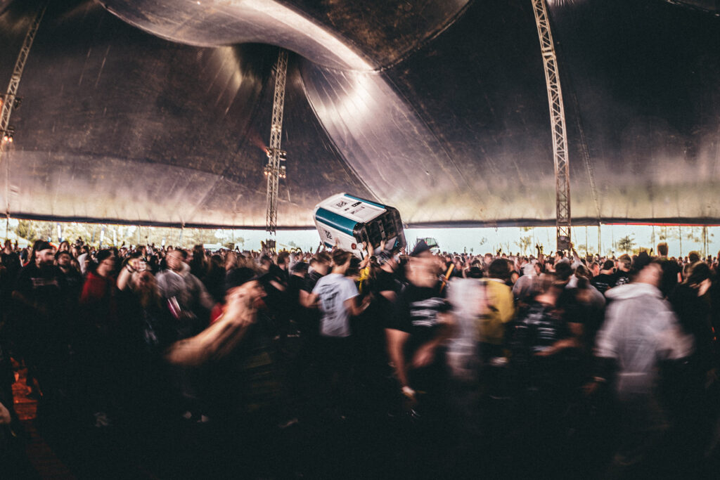 Jeden z největších pitů a oblaků prachu se pak zvířil na Pendulum, kteří dokázali jako jedni z mála postavit na nohy unavené sobotní osazenstvo. Podobný majstrštyk se podařil i jednomu z největších letošních objevů, švédským Solence, kteří na svém vůbec prvním evropském festivalovém vystoupení naordinovali plnému stanu nevídanou dávku energie. Až nás ta míra řádění donutila vzpomenout si na loňský výkon While She Sleeps.